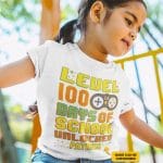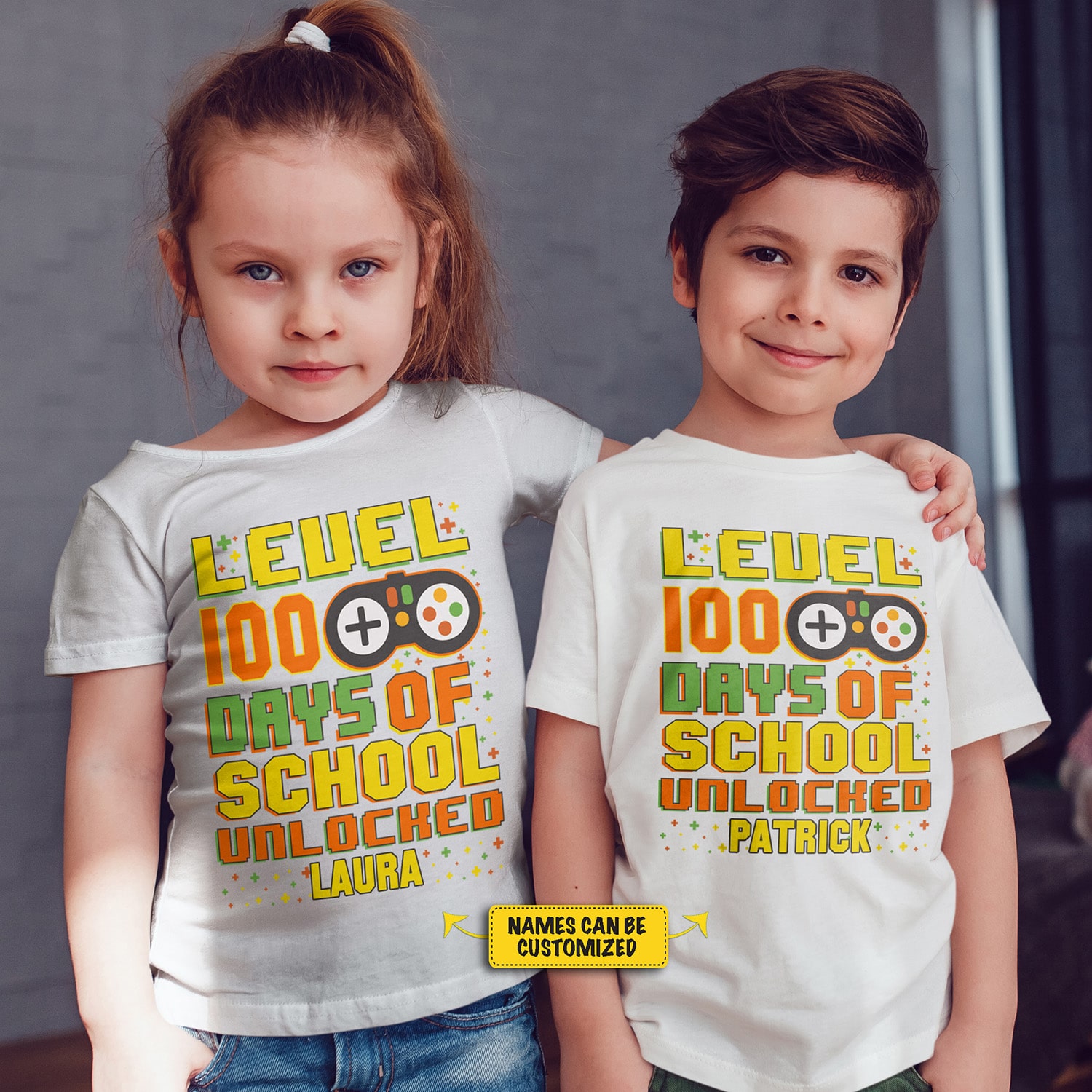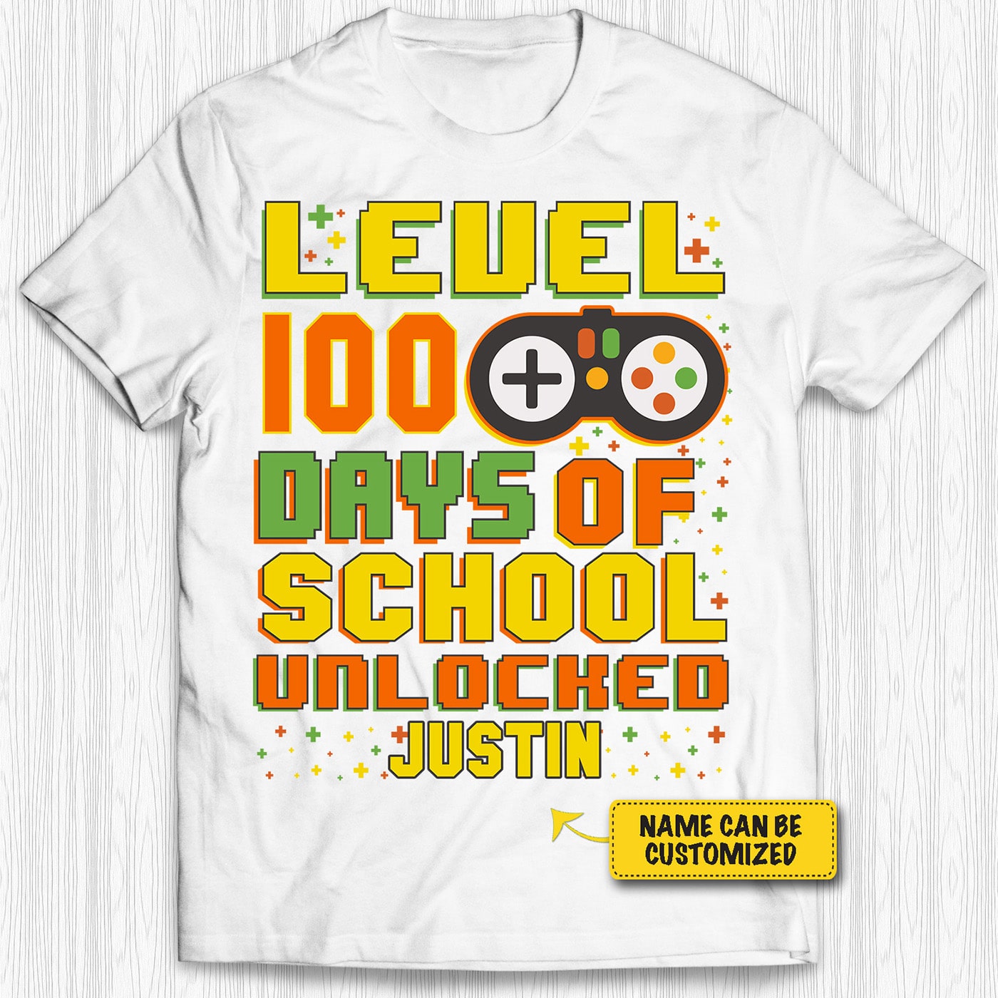 Personalized 100 Days Of School Unlocked Funny Video Gamer Student T-Shirt For Kids