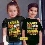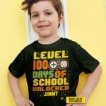 Personalized Level 100 Days Of School Unlocked Funny Video Gamer Student T-Shirt Funny Kids Shirt