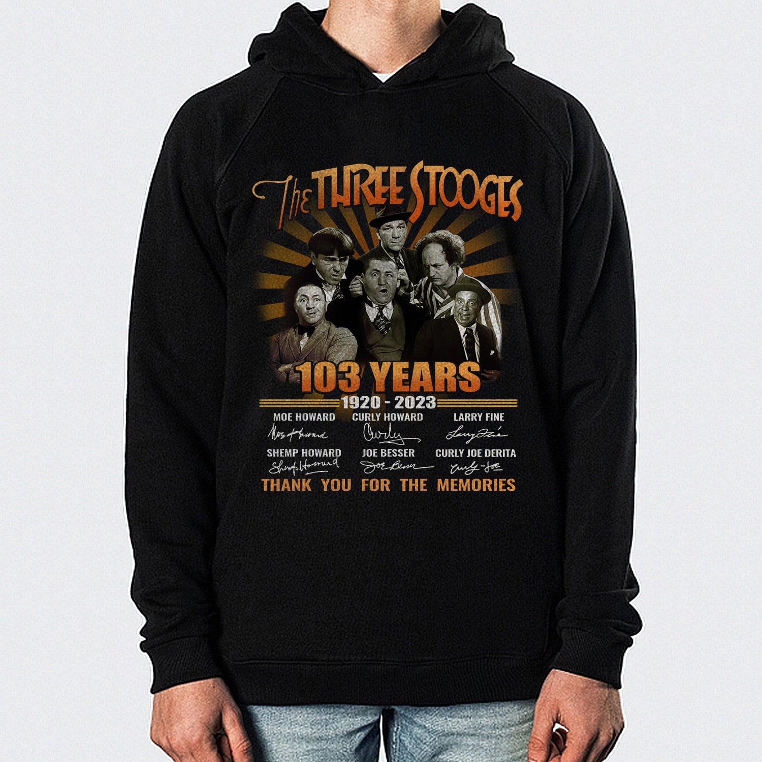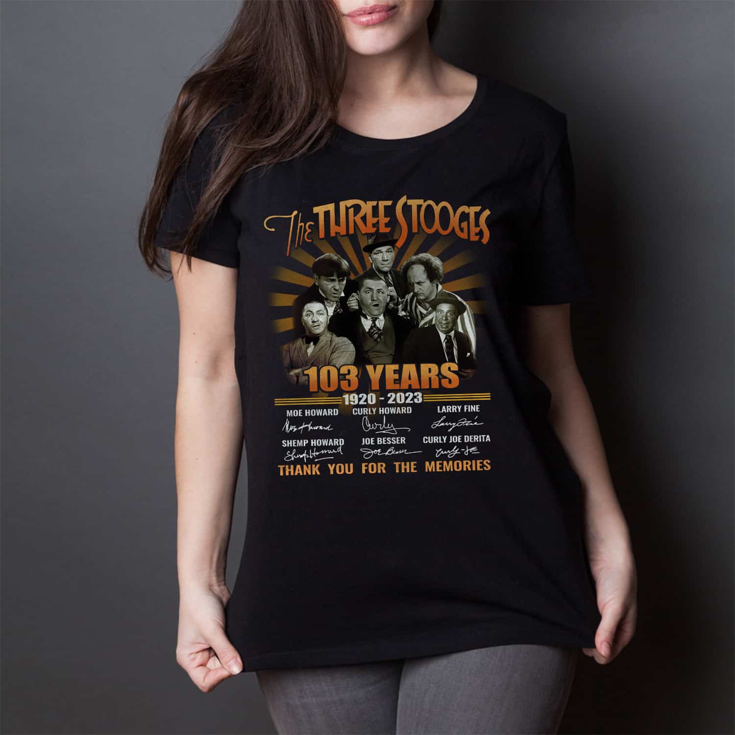 Are you spending too much time to find creative merchandise for you or suitable & special gifts for your mommy, your daddy, your son, your daughter, your children, your friends or someone you love? The struggle is over because we have various 103 Years Three Stooges Shirt, Three Stooges Shirt, Three Stooges 103 Years Anniversary Shirt, Three Stooges Hoodie, Three Stooges Movie Shirt, Three Stooges Funny Movie Shirt, Three Stooges Anniversary Shirt, Three Stooges 103 Years which will make perfect presents for your beloveds. In order to make your present stand out, we have created lots of unique and awesome customized photo gifts & personalized designs.