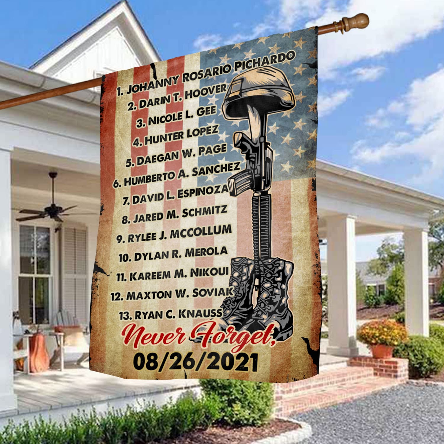 Let’s Shop Names Of 13 Fallen Soldiers Never Forget 08/26/2021 Decorative Garden Flag – Indoor Outdoor Flag – House Flag!