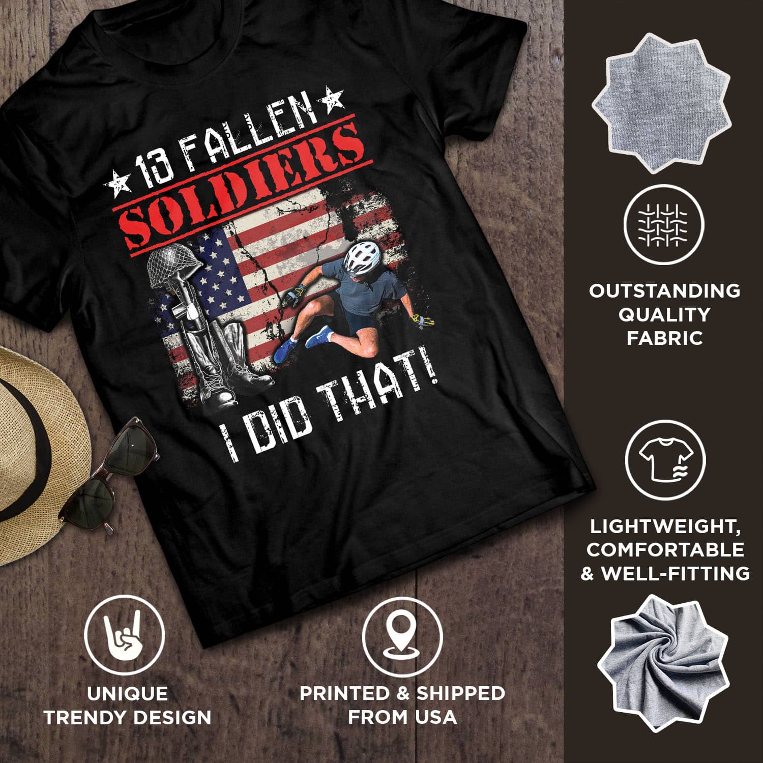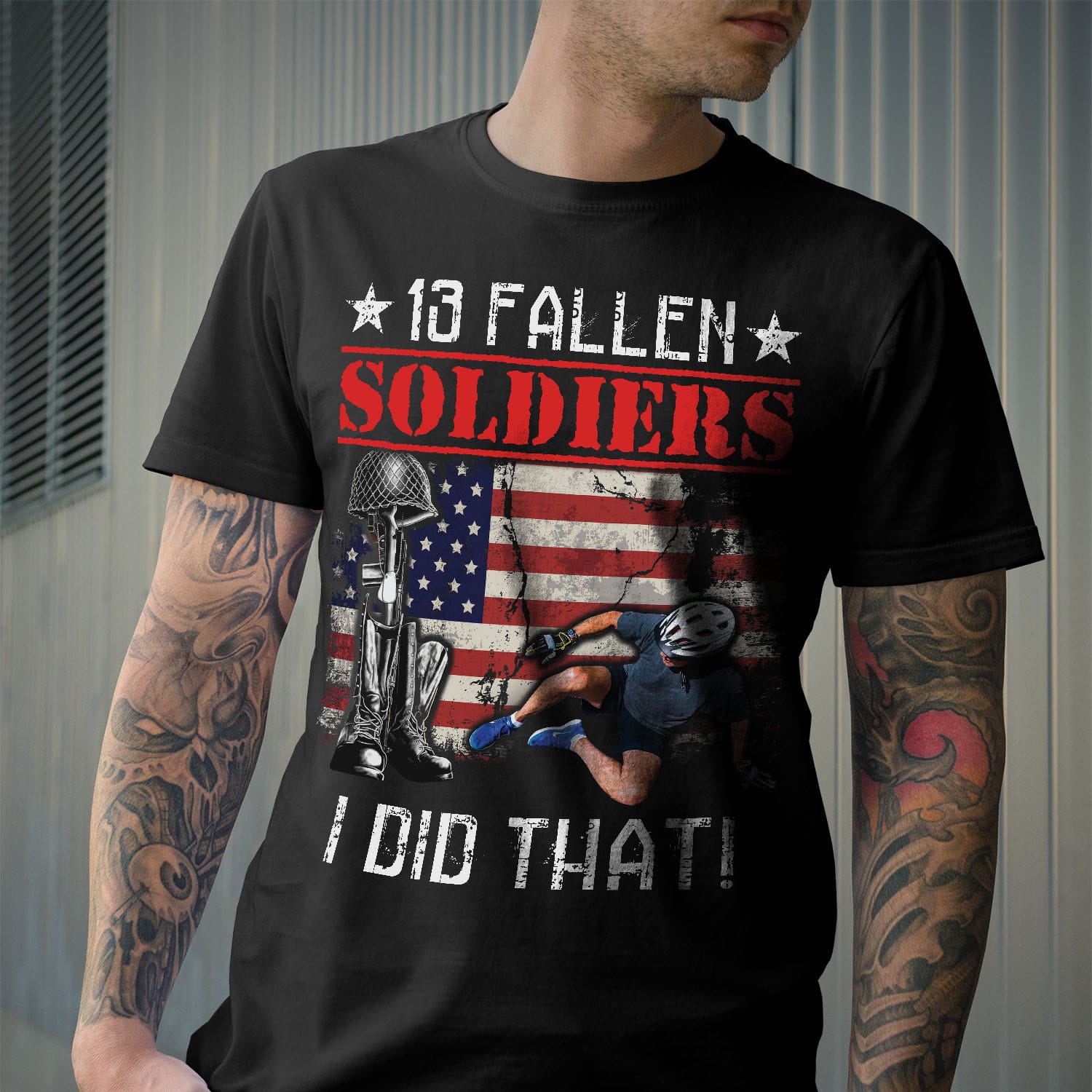 Are you spending too much time to find creative merchandise for you or suitable & special gifts for your mommy, your daddy, your son, your daughter, your children, your friends or someone you love? The struggle is over because we have various 13 Fallen Soldiers Shirt, 13 Fallen Soldiers Shirt Women, 13 Fallen Soldiers Names Shirt, Biden T Shirts for Men Funny, Anti Biden Shirt, Anti-Biden T-Shirts, Anti Joe Biden Shirts for Men, Anti-Biden Shirts, Biden Bike Shirt, Biden Falling Off Bike Shirt which will make perfect presents for your beloveds. In order to make your present stand out, we have created lots of unique and awesome customized photo gifts & personalized designs.