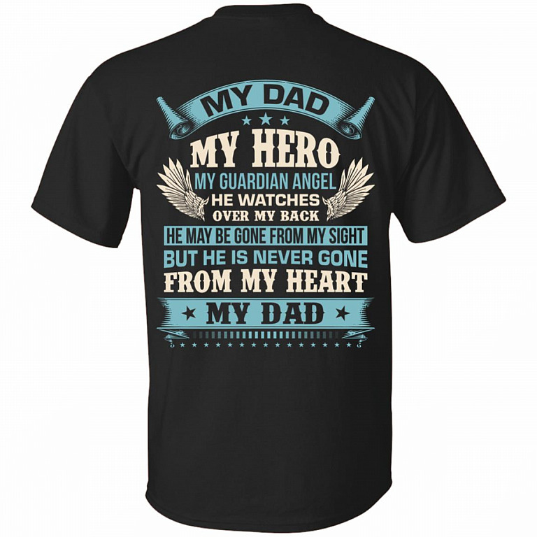 My Dad My Hero My Guardian Angel Print On Back T-Shirt
