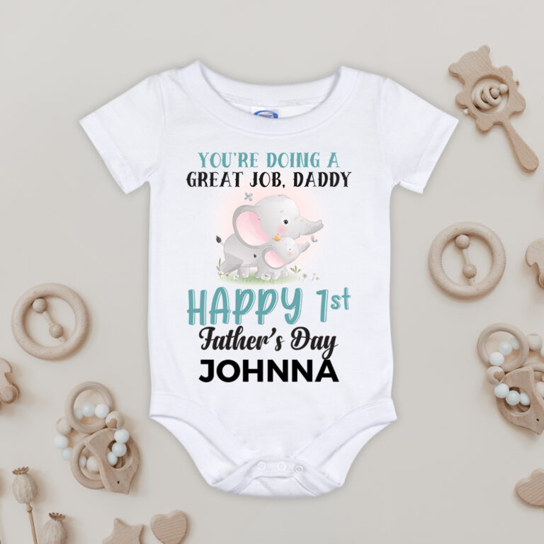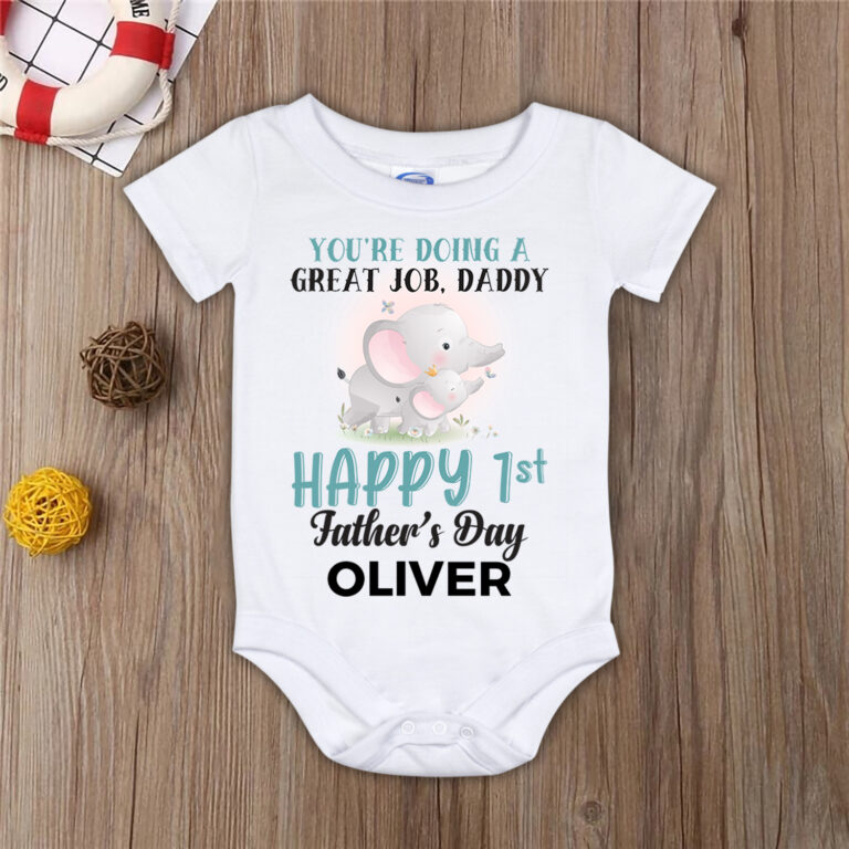 Let’s Shop Personalized Elephant You’re Doing a Great Job Daddy Happy 1st Father’s Day Baby Onesie-Baby Infant Bodysuit!