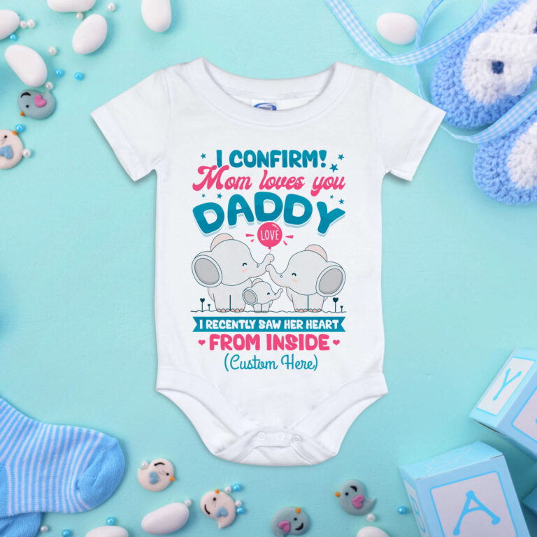 Let’s Shop Personalized Dad I Confirm Moms Love You Baby Onesie – Baby Infant Bodysuit – Funny First Father’s Day Gift!