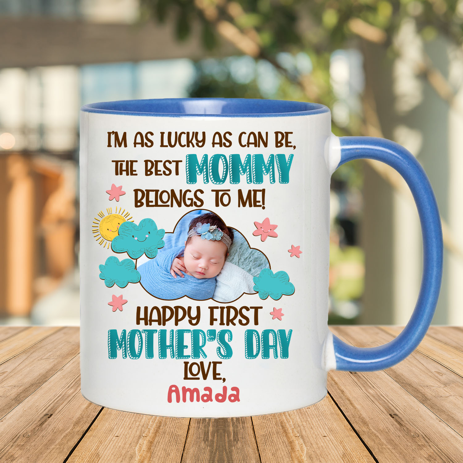 Let’s Shop Personalized Photo I’m as Lucky as Can Be the Best Mommy Belongs To Me Accent Mug!