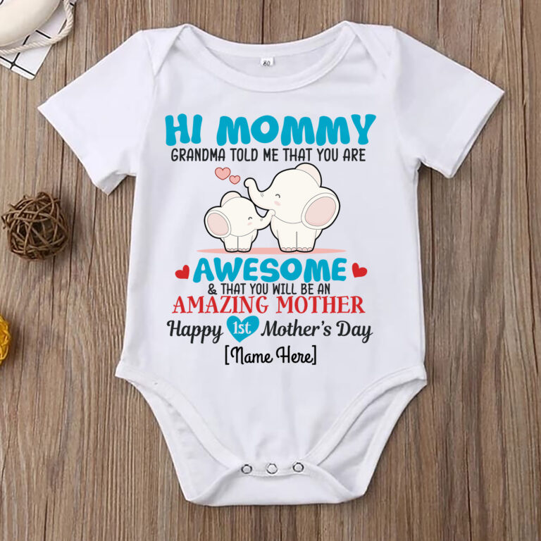 Let’s Shop Personalized Hi Mommy Grandma Told Me That You Are Awesome Happy 1st Mother’s Day Baby Onesie – Infant Bodysuit!