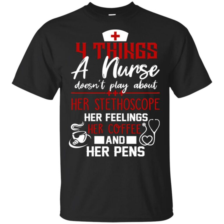 4 Things A Nurse Doesn’t Play About Her Stethoscope Her Feelings Her Coffee and Her Pens T-Shirt – V-Neck Shirt