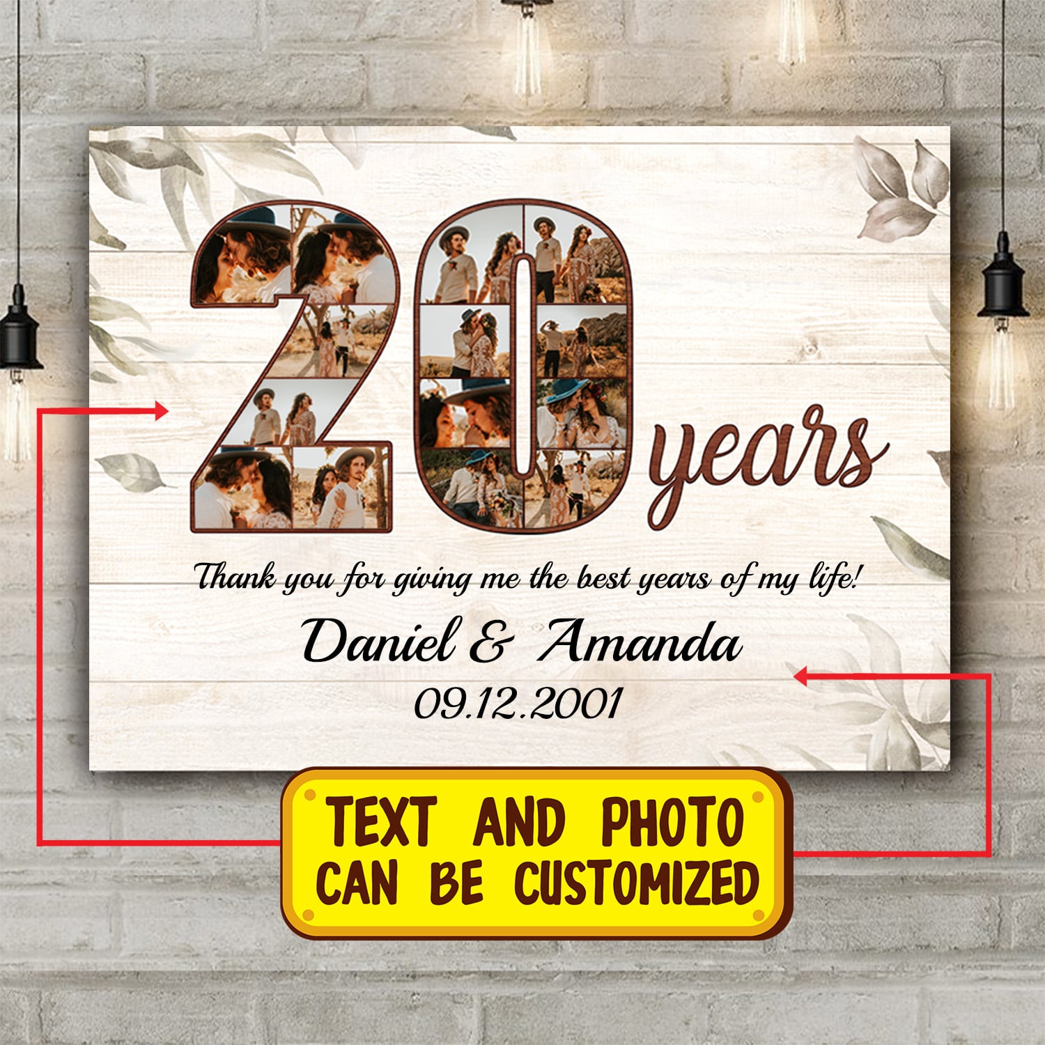 Let’s Shop Personalized Photo 20 Years Anniversary – 20th Wedding Anniversary Custom Photo Framed Canvas – Unframed Poster!