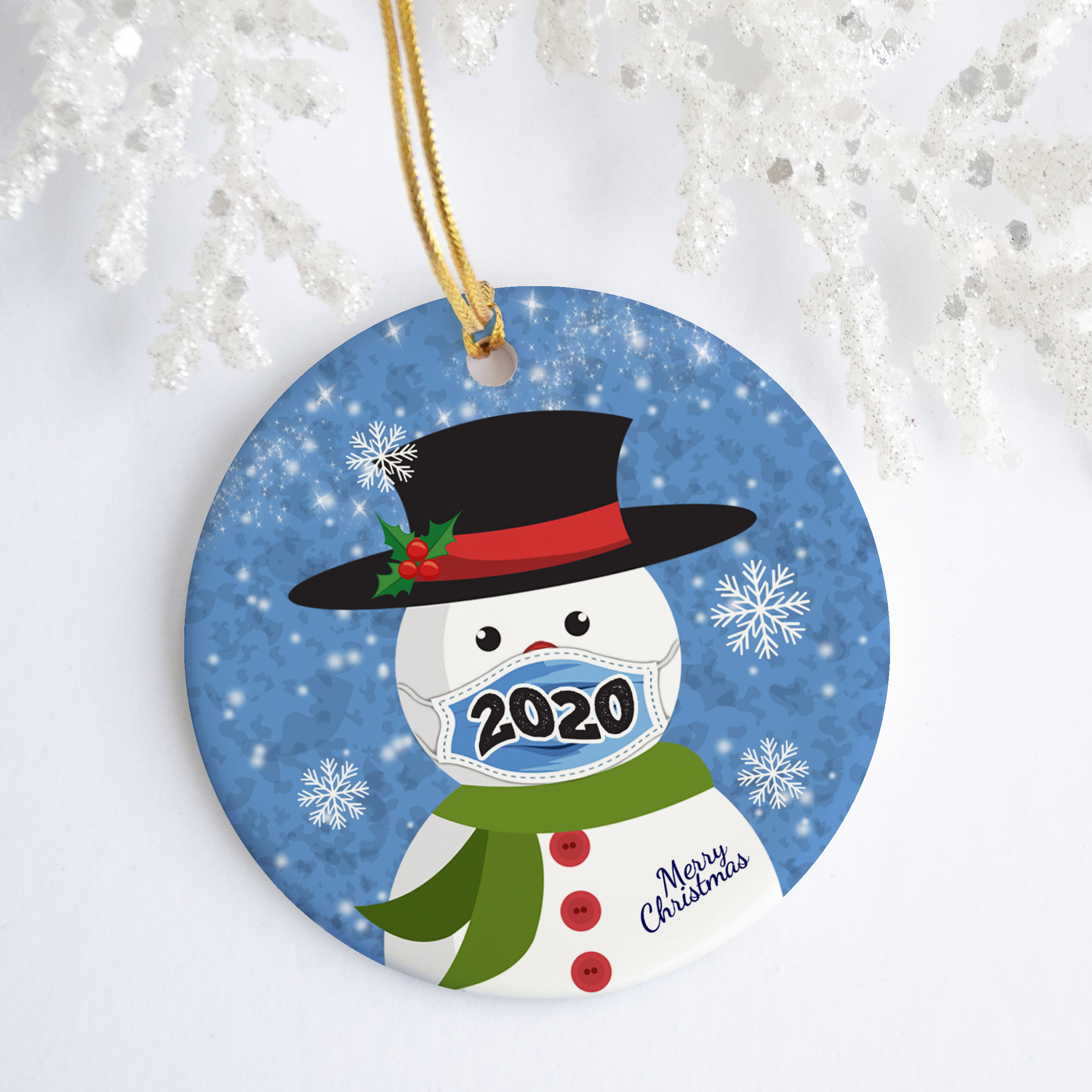 Let’s Shop Ma-sk Snowman 2020 Christmas Circle Ornament – Holiday Pandemic Covid 19 Decoration Gift!