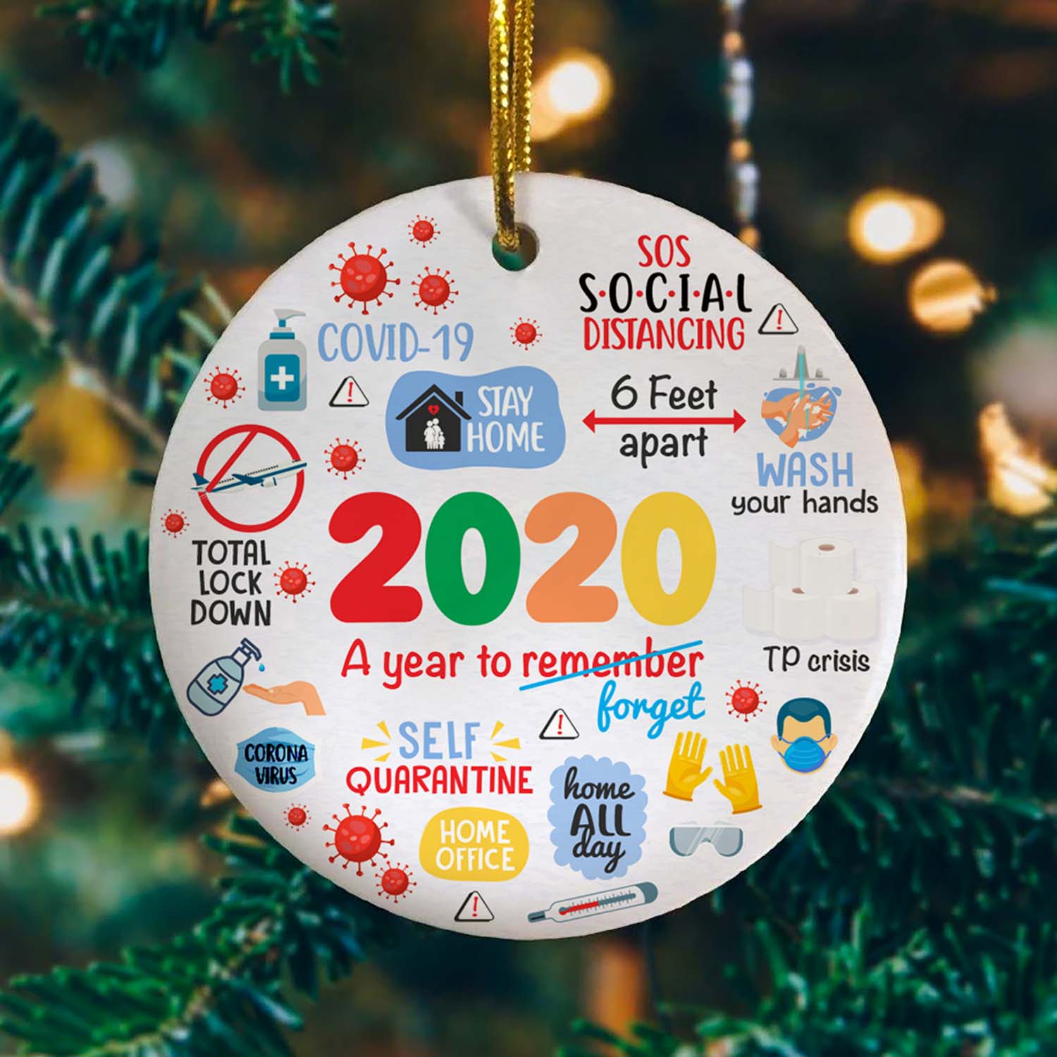 Let’s Shop 2020 A Year To Forger Decorative Christmas Ornament – Holiday Flat Circle Ornament – Holiday Decoration Gift!