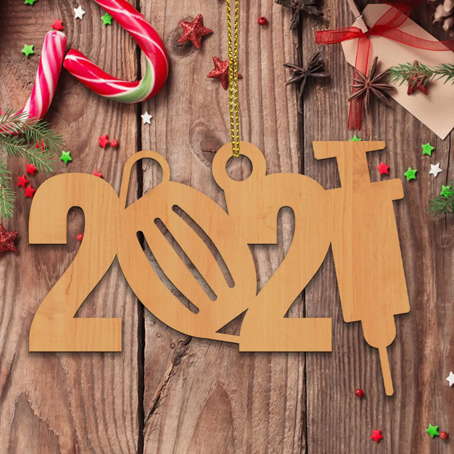 Let’s Shop 2021 Facemask Needle Decorative Custom Shaped Wooden Christmas Ornament Keepsake!