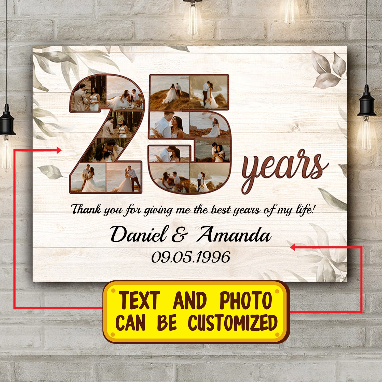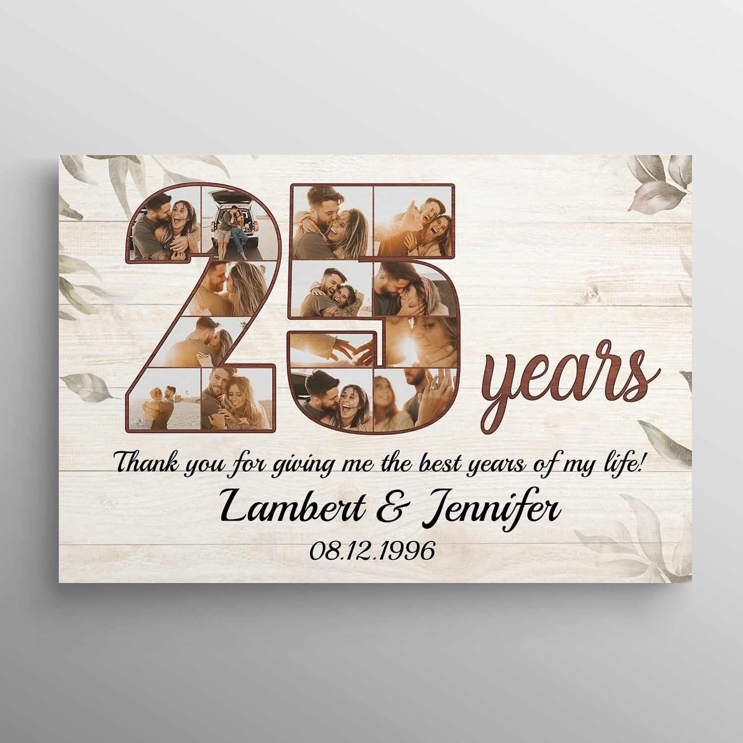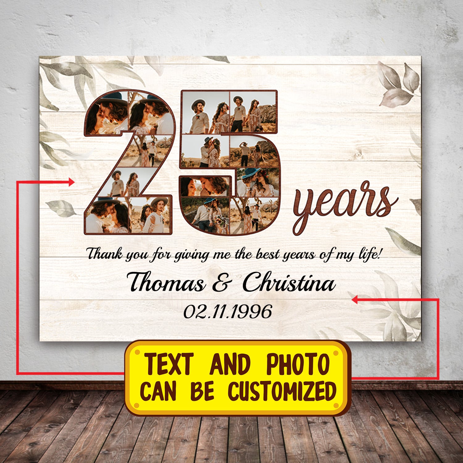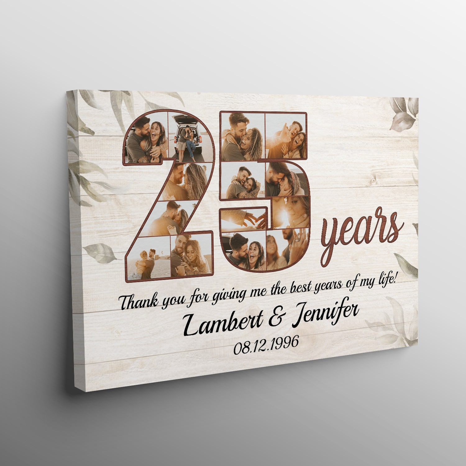 Are you spending too much time to find creative merchandise for you or suitable & special gifts for your mommy, your daddy, your son, your daughter, your children, your friends or someone you love? The struggle is over because we have various 25th Anniversary Tin Gifts, 25th Anniversary Personalized Gifts, Couple Custom Canvas 25 Years Anniversary, Personalized Wedding Canvas, Personalized Anniversary Poster, Thank You for Giving Me the Best Years Canvas, 25 Years Couple Poster which will make perfect presents for your beloveds. In order to make your present stand out, we have created lots of unique and awesome customized photo gifts & personalized designs.