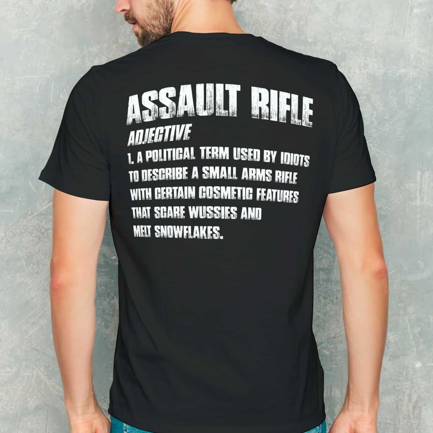 Assault Rifle Definition Shirt a Political Term Used by Idiots Print on Back only – Plain Front T-Shirt