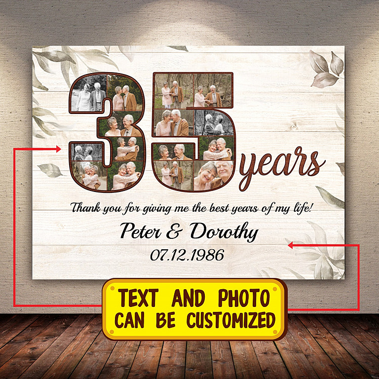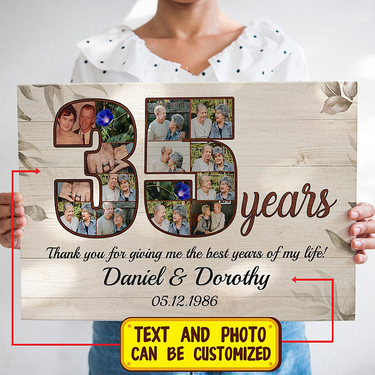Are you spending too much time to find creative merchandise for you or suitable & special gifts for your mommy, your daddy, your son, your daughter, your children, your friends or someone you love? The struggle is over because we have various 35th Anniversary Tin Gifts, 35th Anniversary Personalized Gifts, Couple Custom Canvas 35 Years Anniversary, Personalized Wedding Canvas, Personalized Anniversary Poster, Thank You for Giving Me the Best Years Canvas, 35 Years Couple Poster which will make perfect presents for your beloveds. In order to make your present stand out, we have created lots of unique and awesome customized photo gifts & personalized designs.