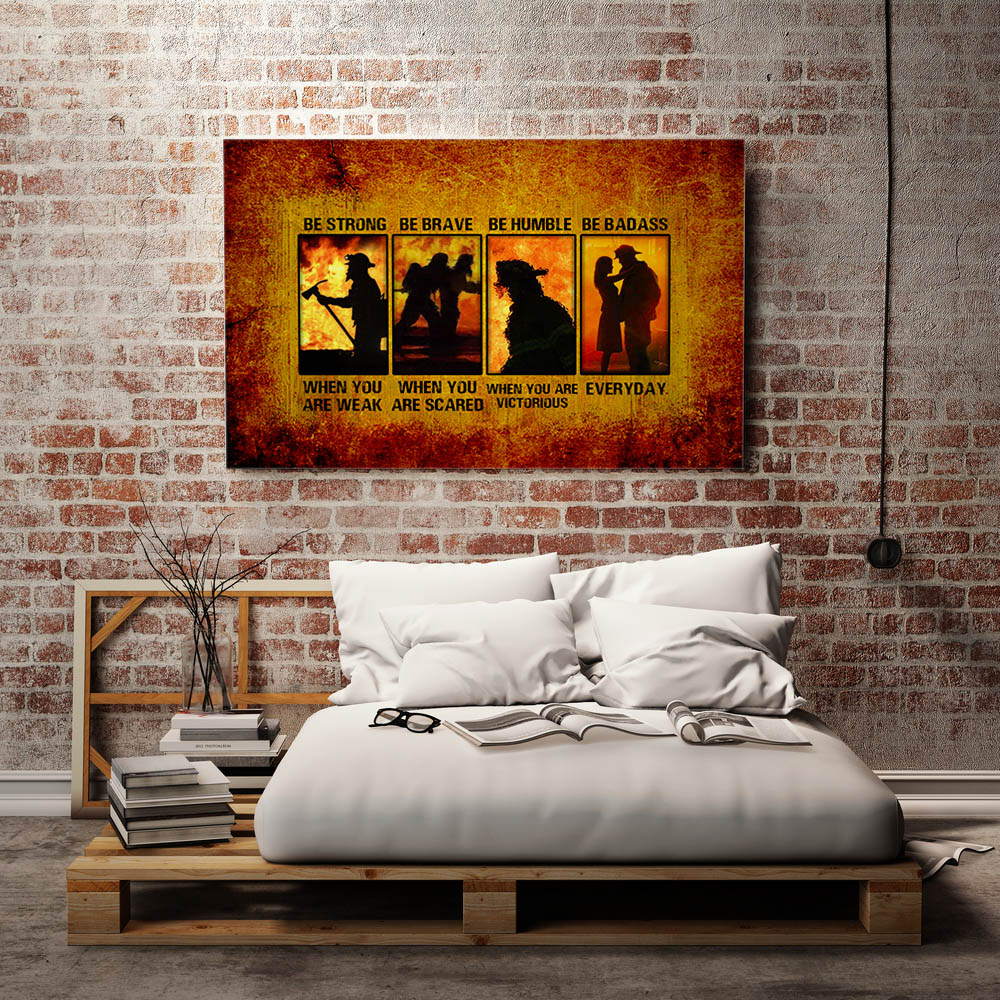 Let’s Shop Proud Firefighter Life Be Strong Be Brave Be Humble Be Badass Canvas Poster – Shades Of Firefighter Wall Art!
