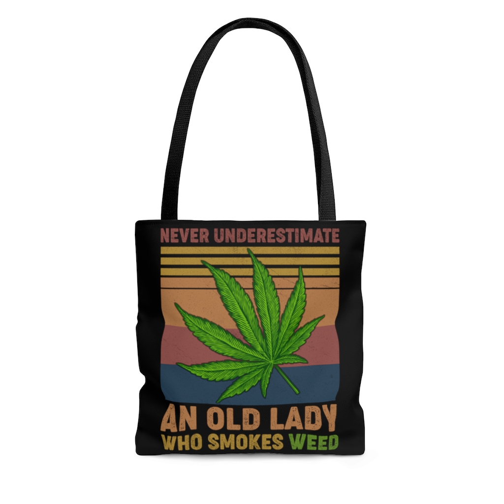 Shop Never Underestimate an Old Lady Who Smokes Weed All Over Print Tote Bag.