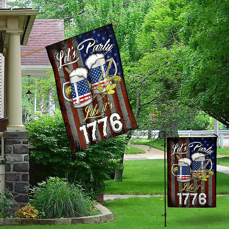 Let’s Shop 4th of July Party Like It’s 1776 American Garden Flag – Funny Drinking Beer House Flag!