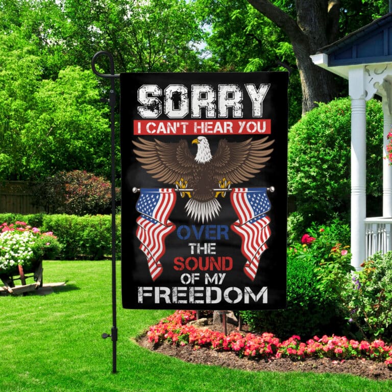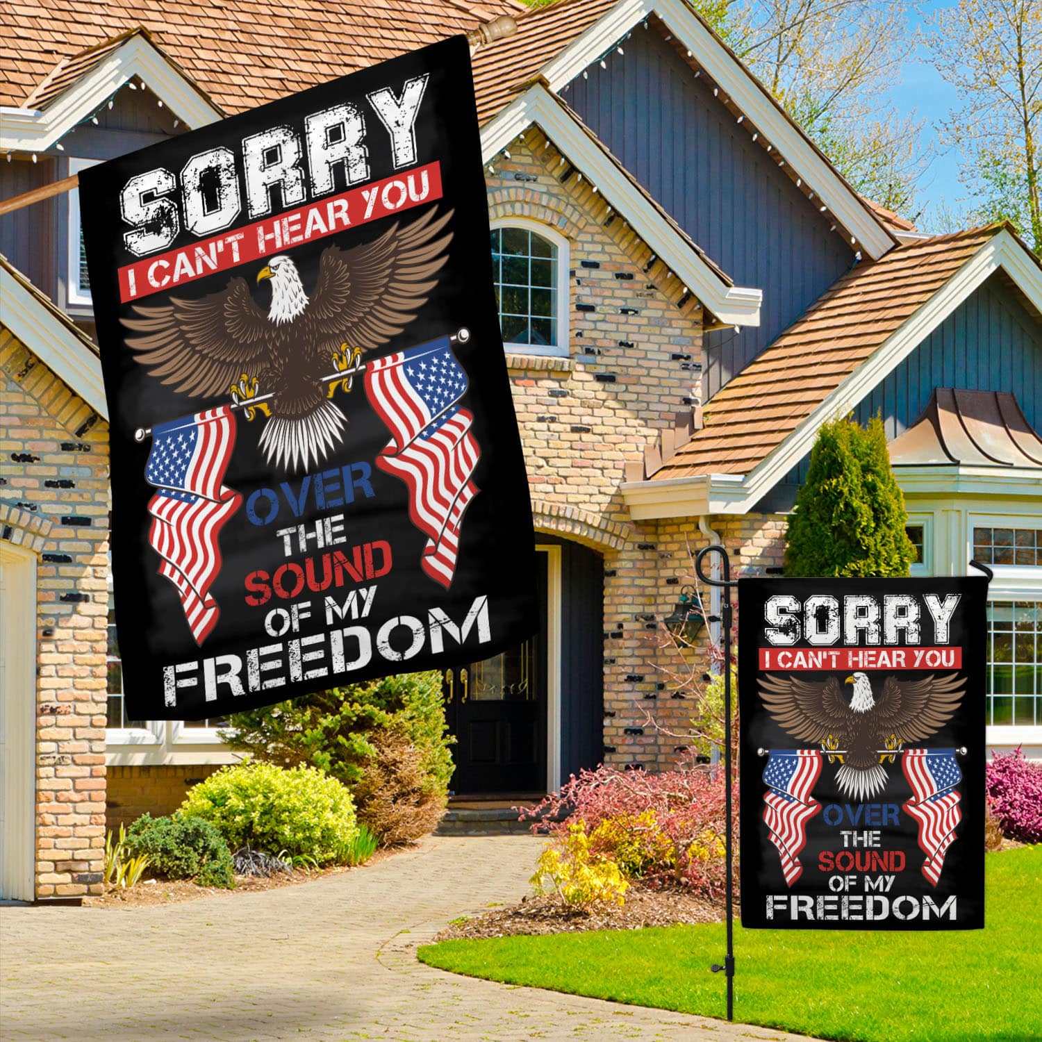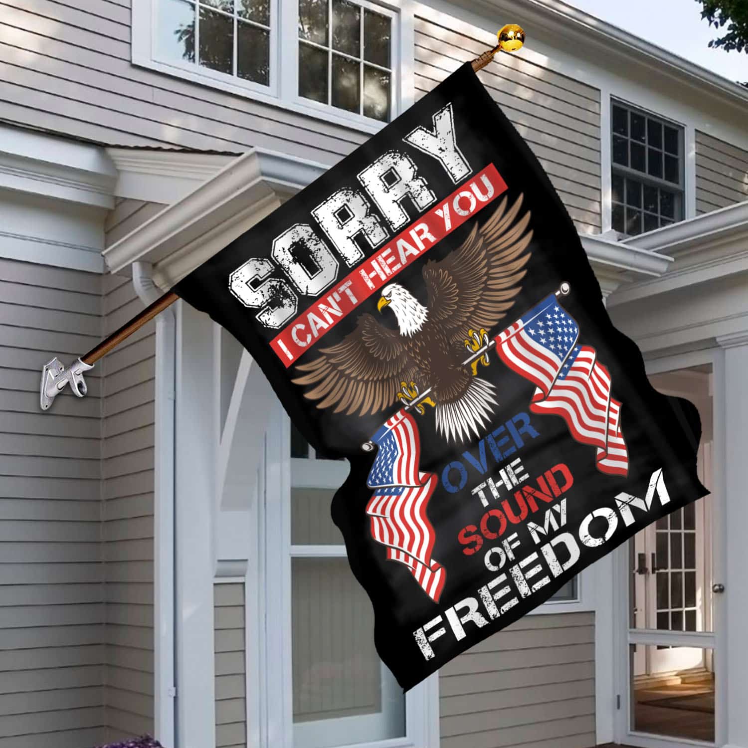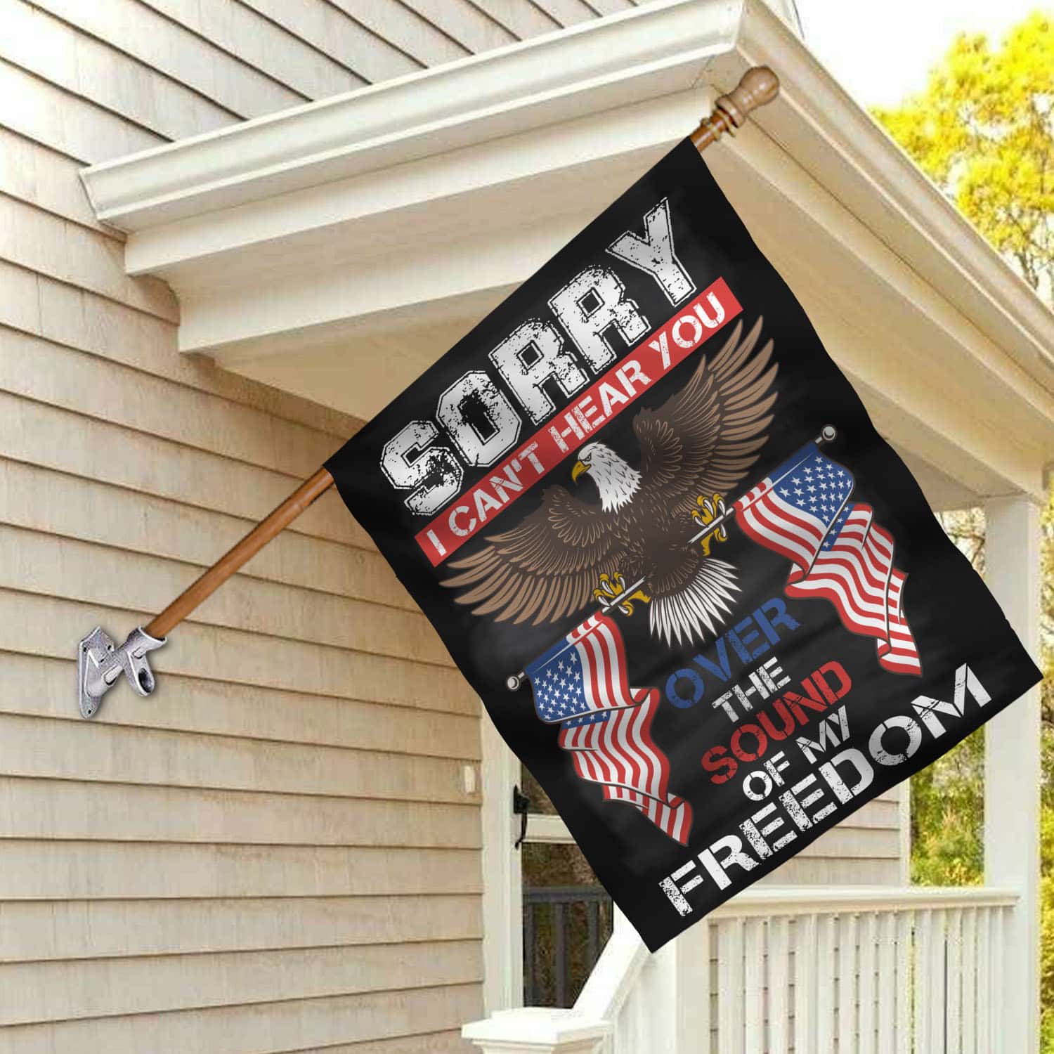 Let’s Shop Sorry I Can’t Hear You Over The Sound Of My Freedom Eagle American 4th Of July Outdoor House Flag – Home Garden Flag!