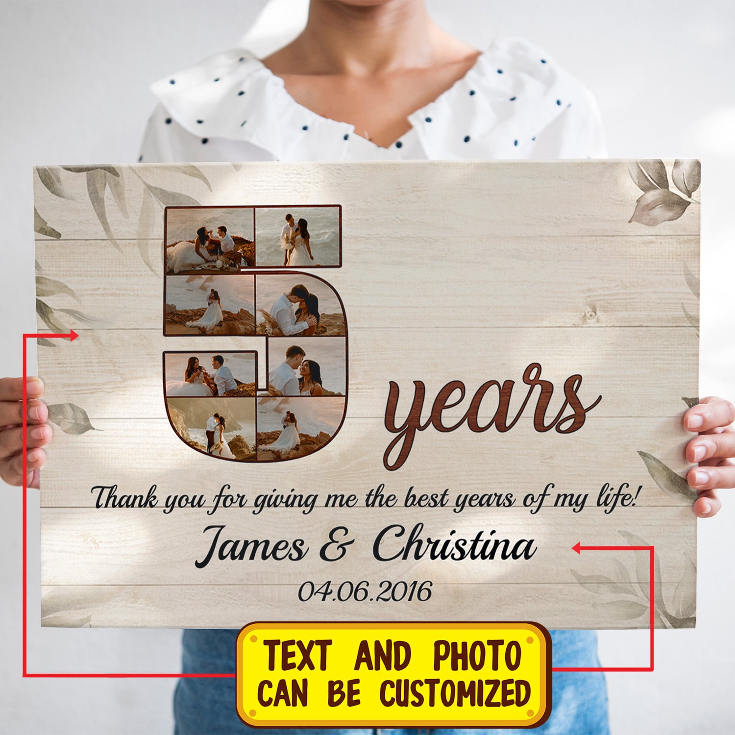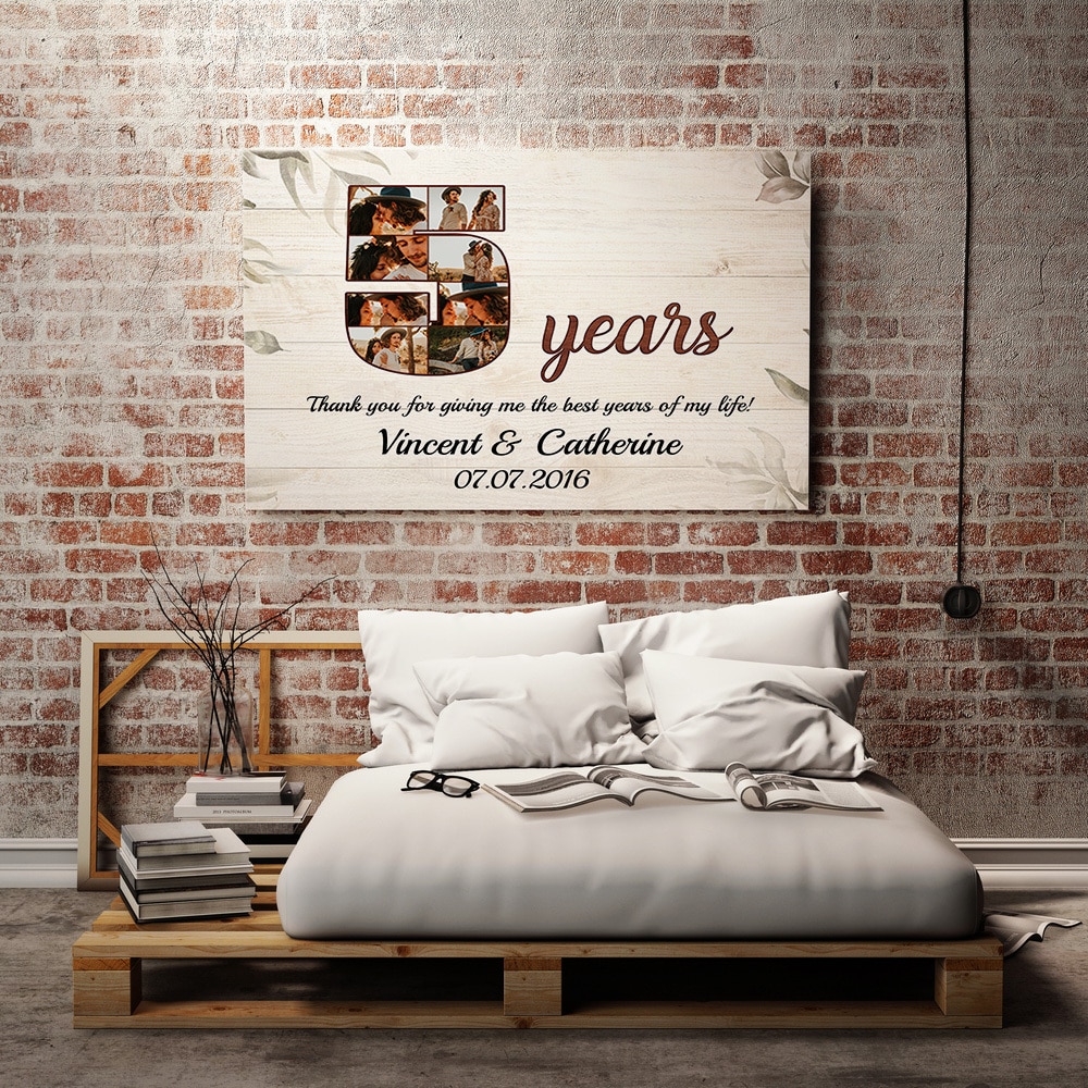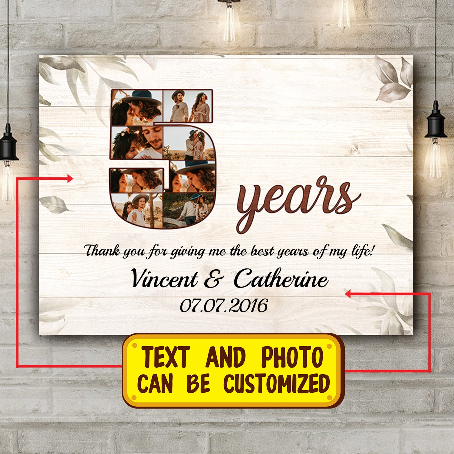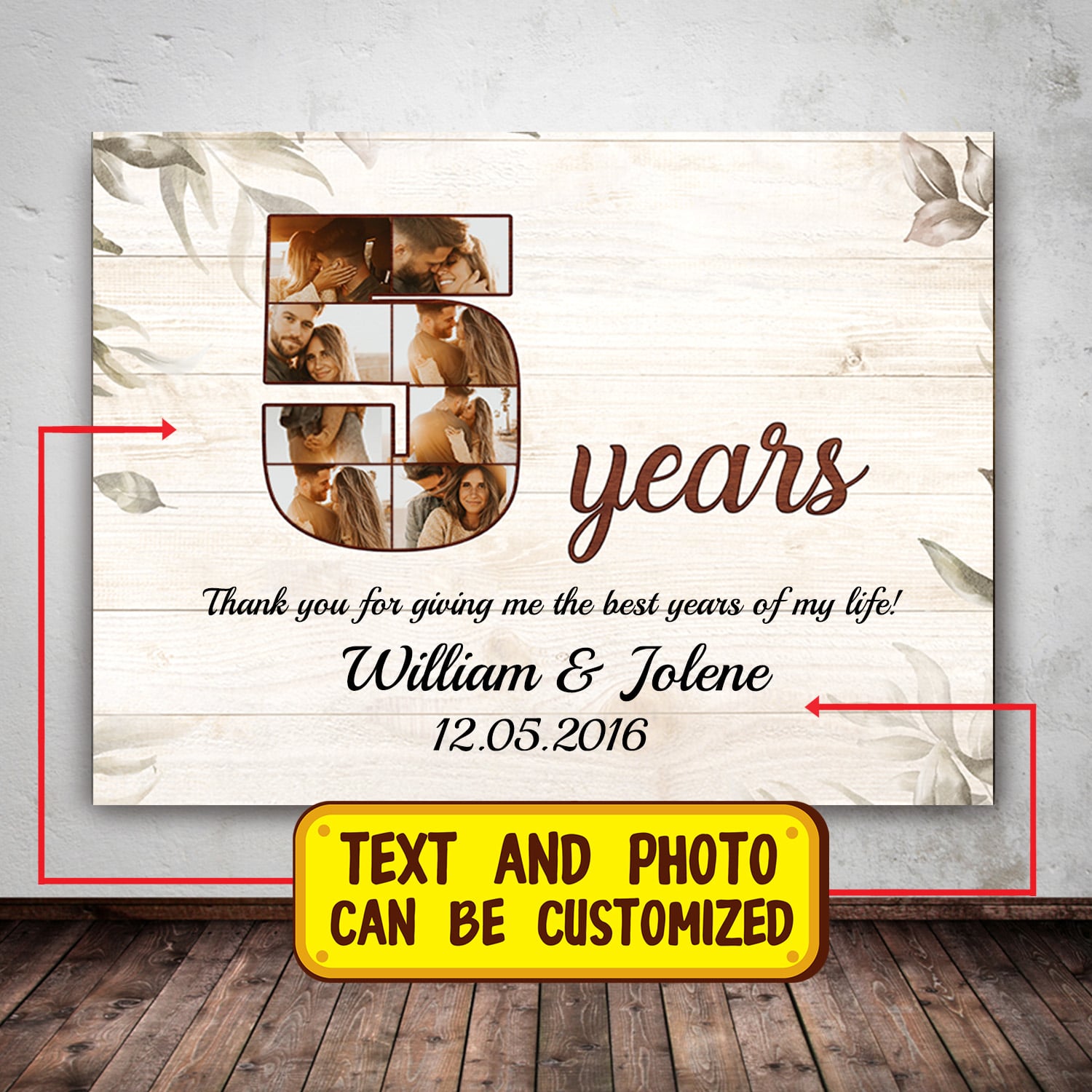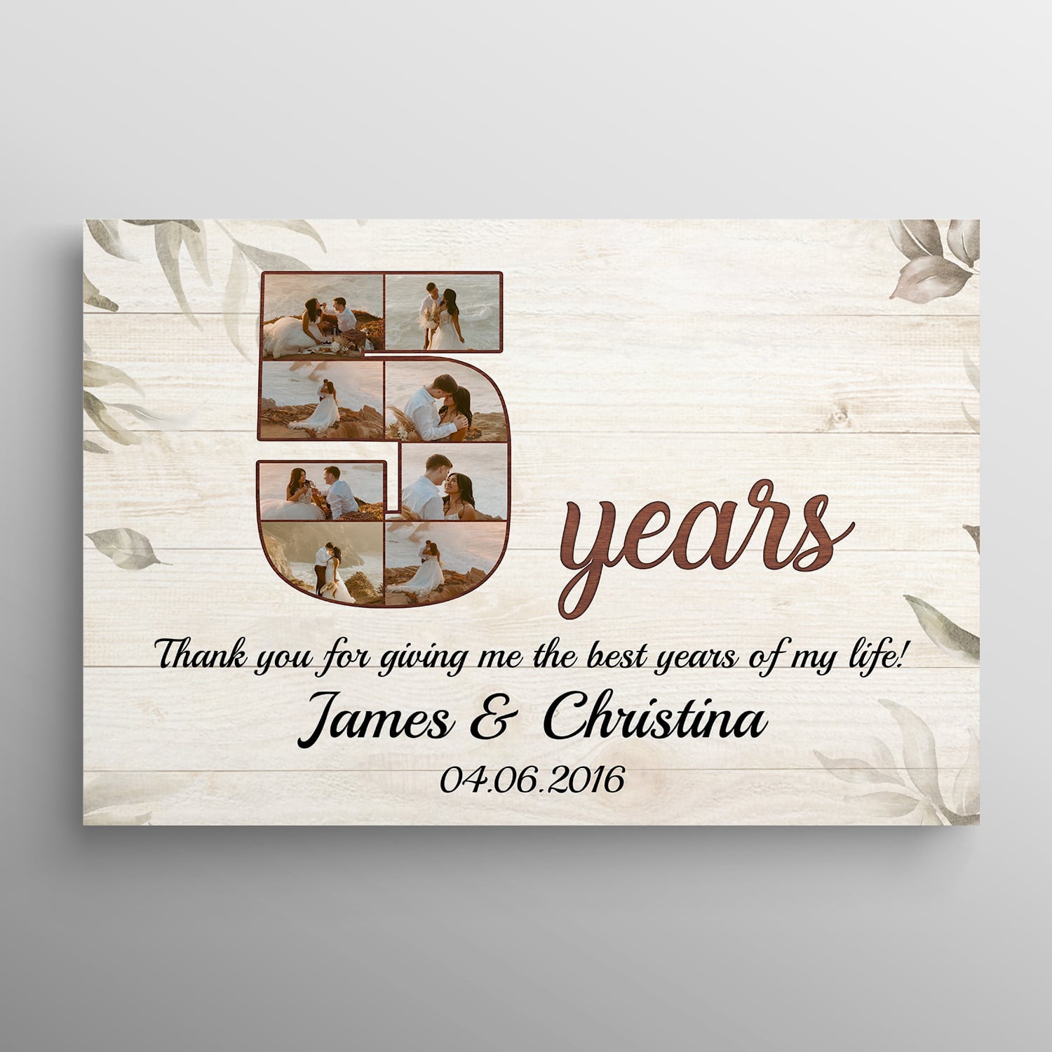 Are you spending too much time to find creative merchandise for you or suitable & special gifts for your mommy, your daddy, your son, your daughter, your children, your friends or someone you love? The struggle is over because we have various 5th Anniversary Tin Gifts, 5th Anniversary Personalized Gifts, Couple Custom Canvas 5 Years Anniversary, Personalized Wedding Canvas, Personalized Anniversary Poster, Thank You for Giving Me the Best Years Canvas, 5 Years Couple Poster which will make perfect presents for your beloveds. In order to make your present stand out, we have created lots of unique and awesome customized photo gifts & personalized designs.