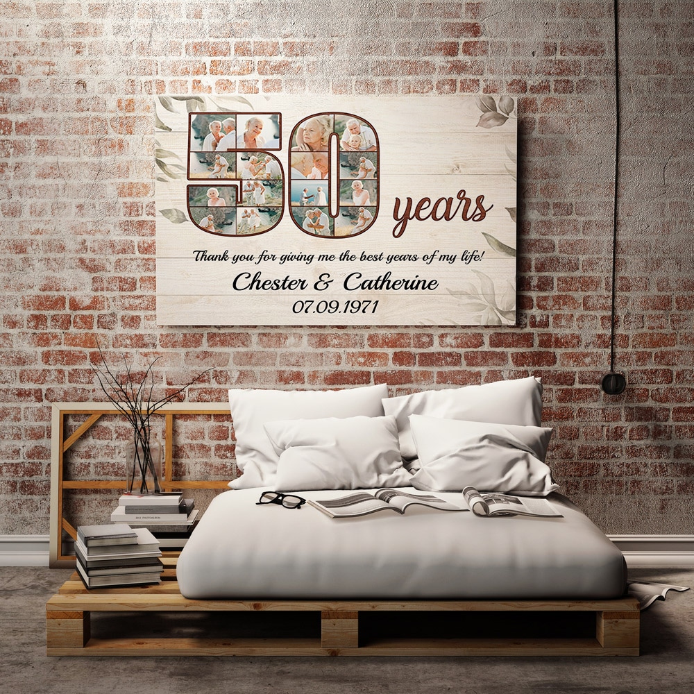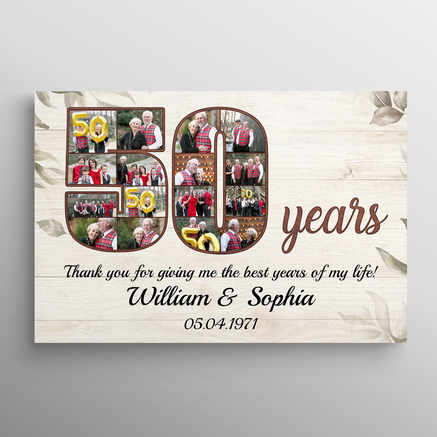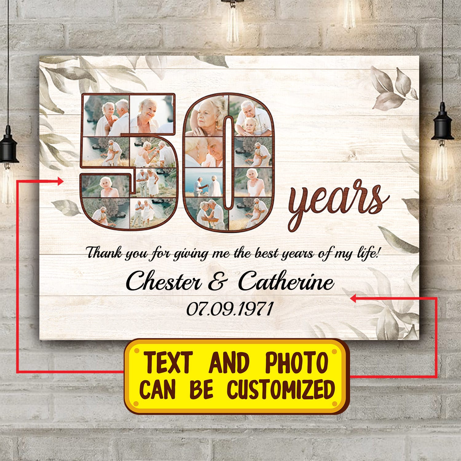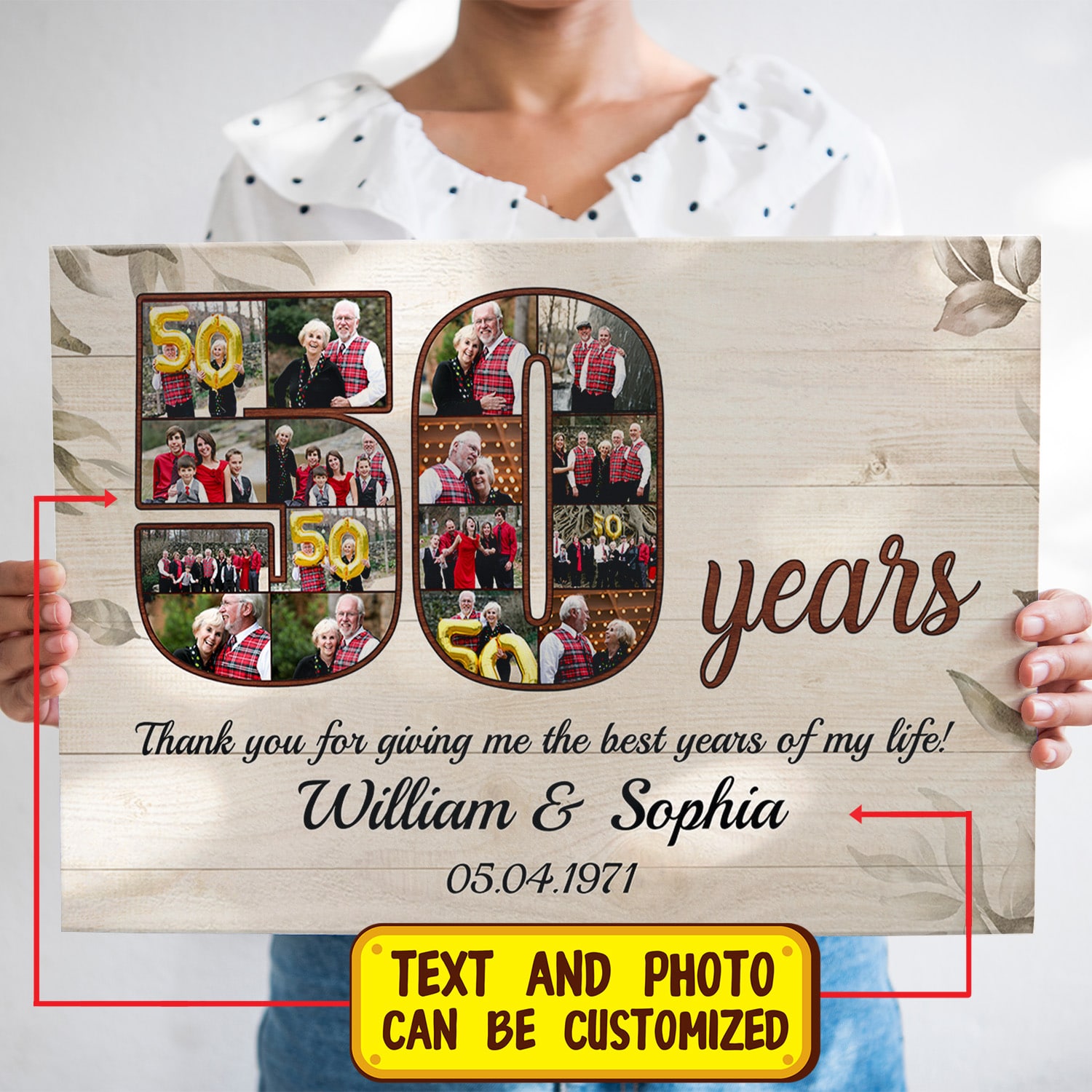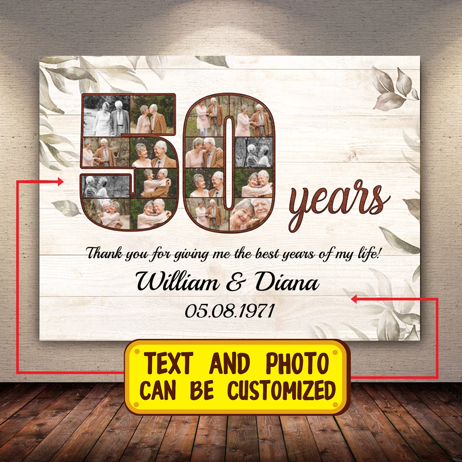 Are you spending too much time to find creative merchandise for you or suitable & special gifts for your mommy, your daddy, your son, your daughter, your children, your friends or someone you love? The struggle is over because we have various 50th Anniversary Tin Gifts, 50th Anniversary Personalized Gifts, Couple Custom Canvas 50 Years Anniversary, Personalized Wedding Canvas, Personalized Anniversary Poster, Thank You for Giving Me the Best Years Canvas, 50 Years Couple Poster which will make perfect presents for your beloveds. In order to make your present stand out, we have created lots of unique and awesome customized photo gifts & personalized designs.