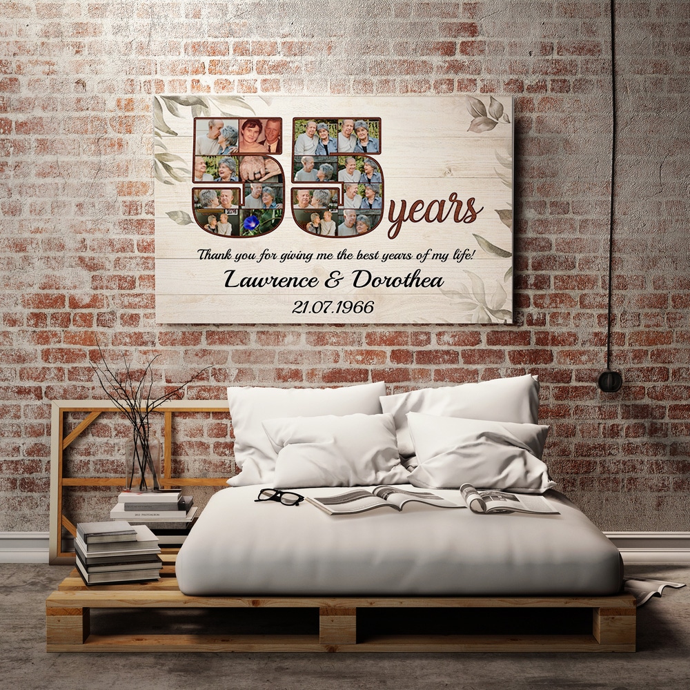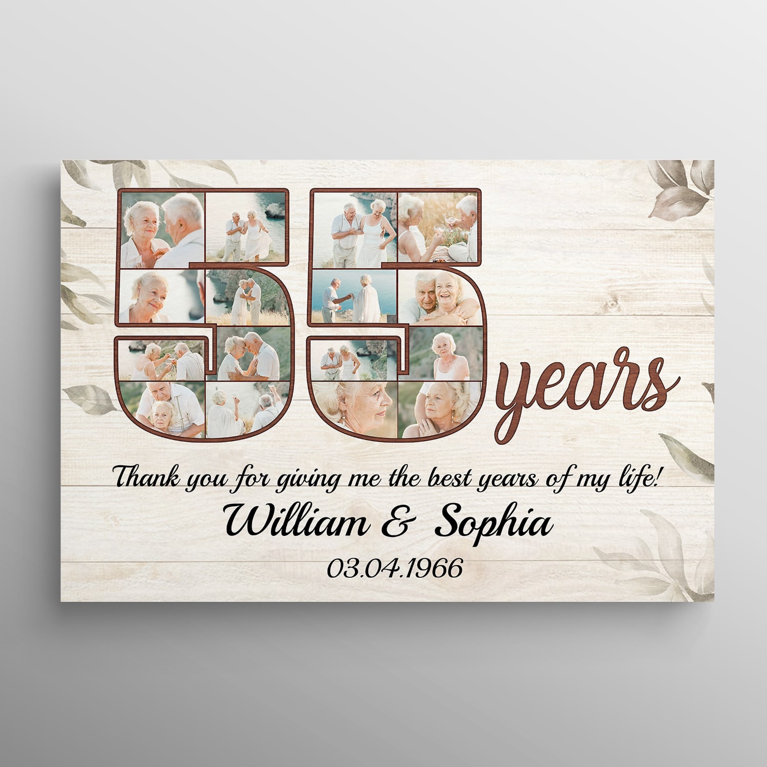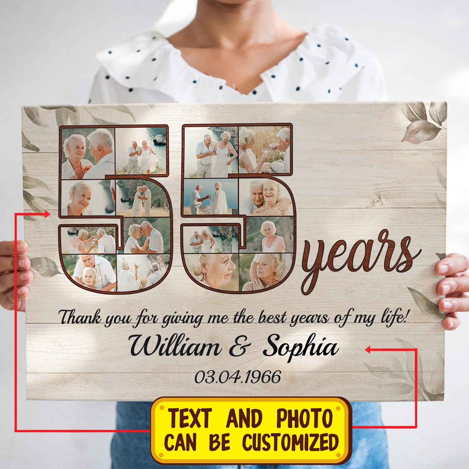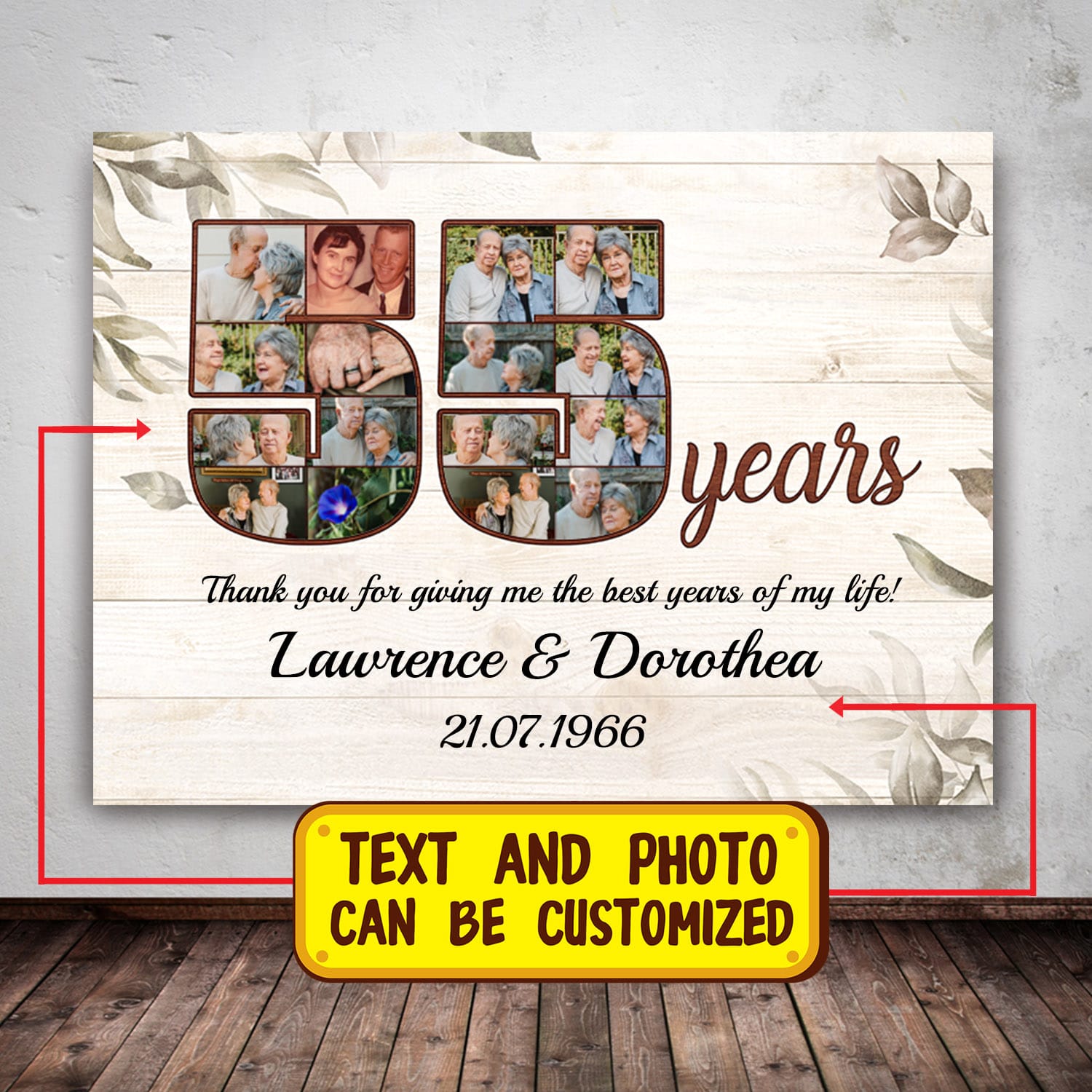 Are you spending too much time to find creative merchandise for you or suitable & special gifts for your mommy, your daddy, your son, your daughter, your children, your friends or someone you love? The struggle is over because we have various 55th Anniversary Tin Gifts, 55th Anniversary Personalized Gifts, Couple Custom Canvas 55 Years Anniversary, Personalized Wedding Canvas, Personalized Anniversary Poster, Thank You for Giving Me the Best Years Canvas, 55 Years Couple Poster which will make perfect presents for your beloveds. In order to make your present stand out, we have created lots of unique and awesome customized photo gifts & personalized designs.