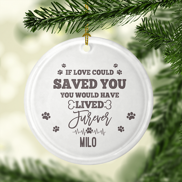 If Love Could Have Saved You Would Have Lived Furever Flat Circle Porcelain Ceramic Personalized Dog Memorial Christmas Ornament