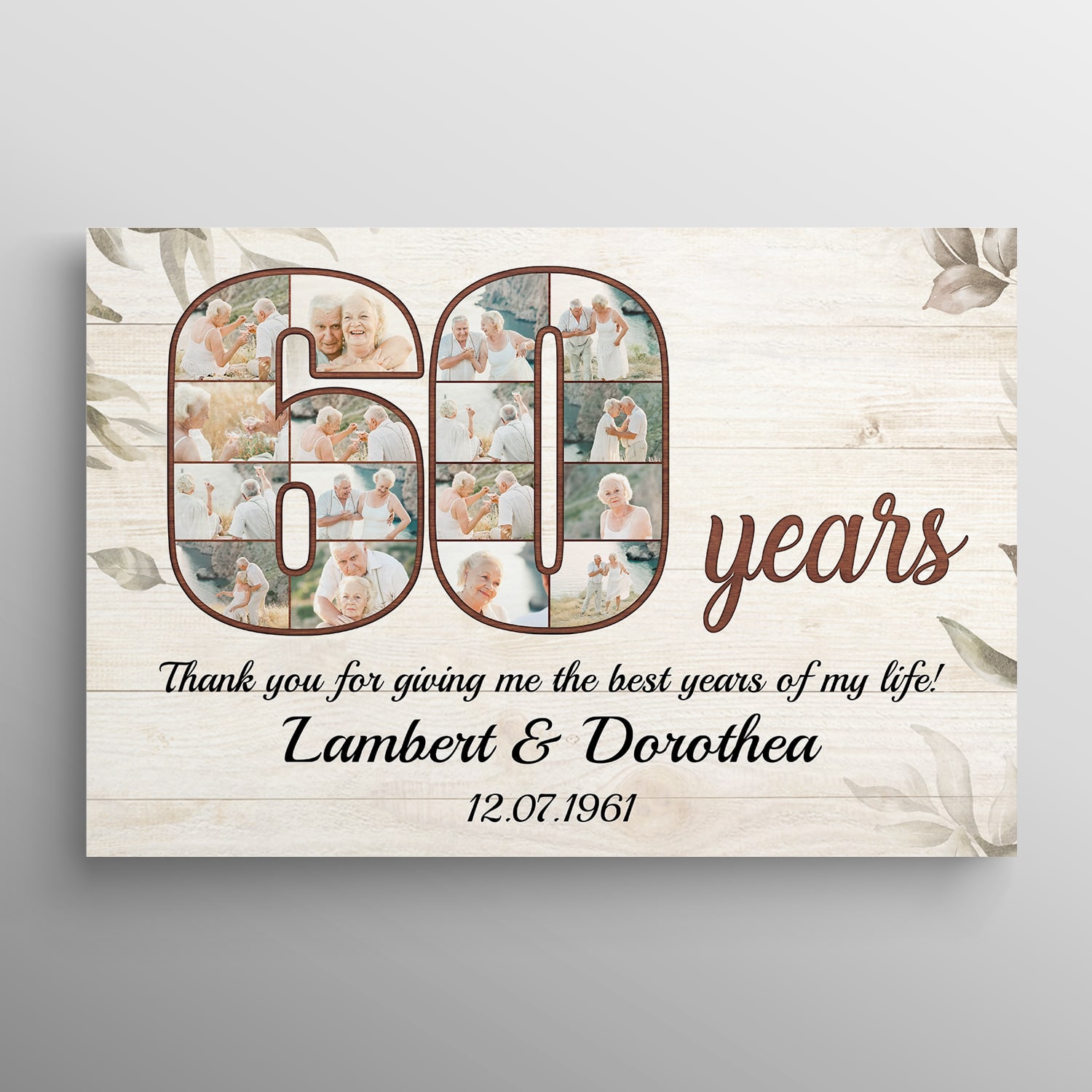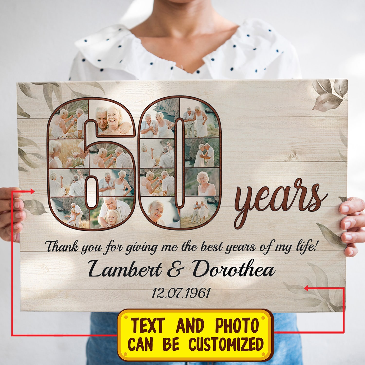 Are you spending too much time to find creative merchandise for you or suitable & special gifts for your mommy, your daddy, your son, your daughter, your children, your friends or someone you love? The struggle is over because we have various 60th Anniversary Tin Gifts, 60th Anniversary Personalized Gifts, Couple Custom Canvas 60 Years Anniversary, Personalized Wedding Canvas, Personalized Anniversary Poster, Thank You for Giving Me the Best Years Canvas, 60 Years Couple Poster which will make perfect presents for your beloveds. In order to make your present stand out, we have created lots of unique and awesome customized photo gifts & personalized designs.