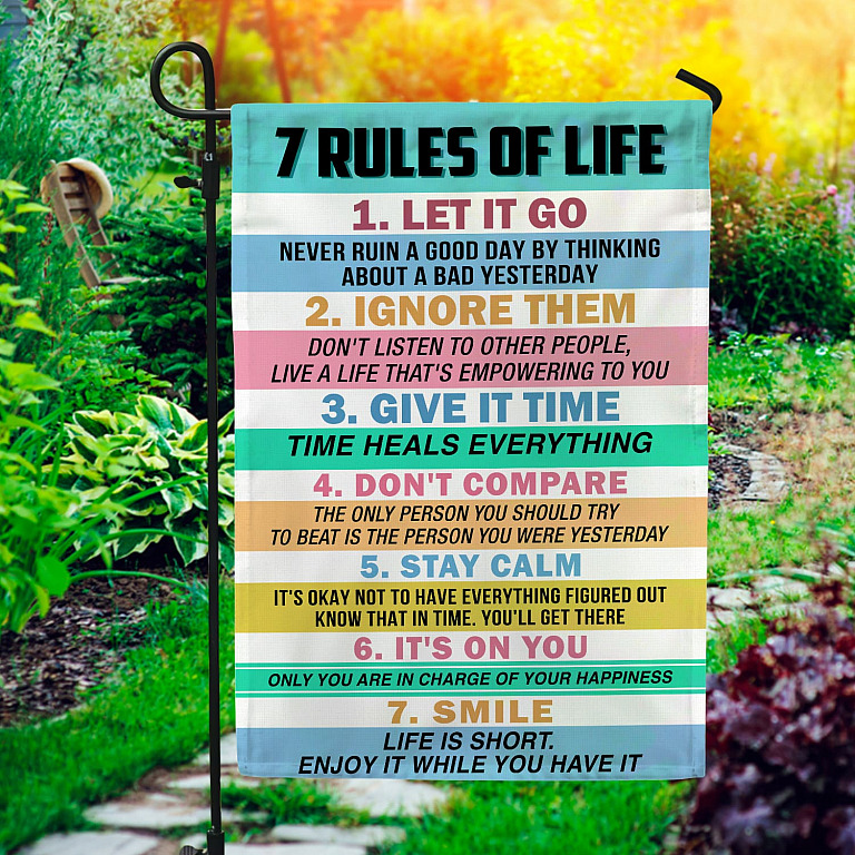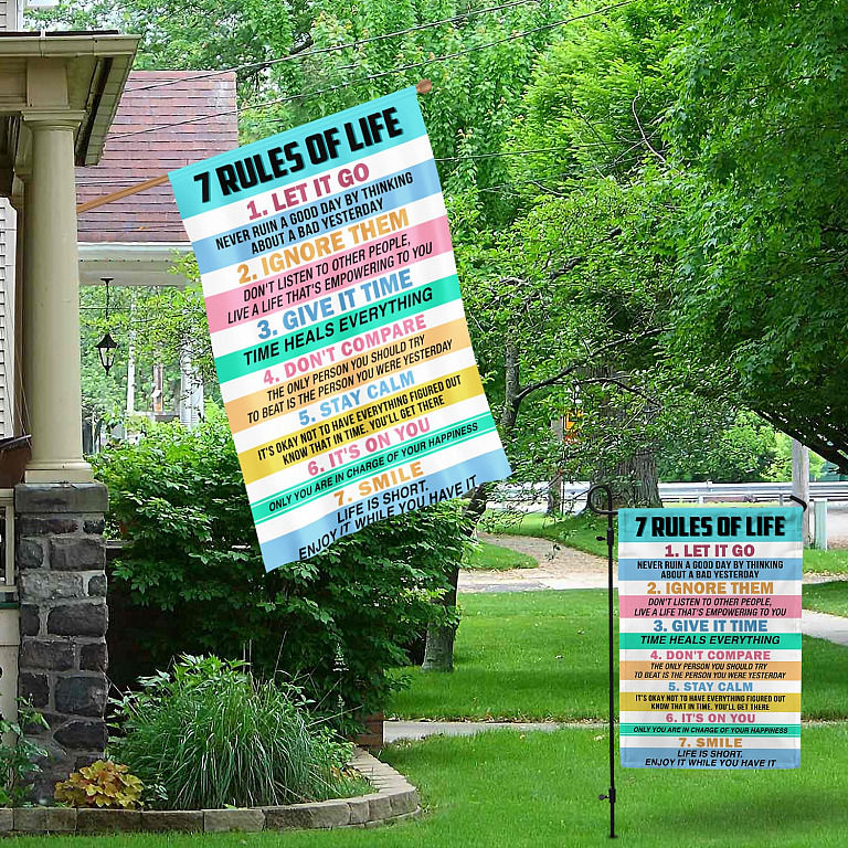 Let’s Shop 7 Rules of Life Decorative Garden Flag – Indoor Outdoor Flag – House Flag!