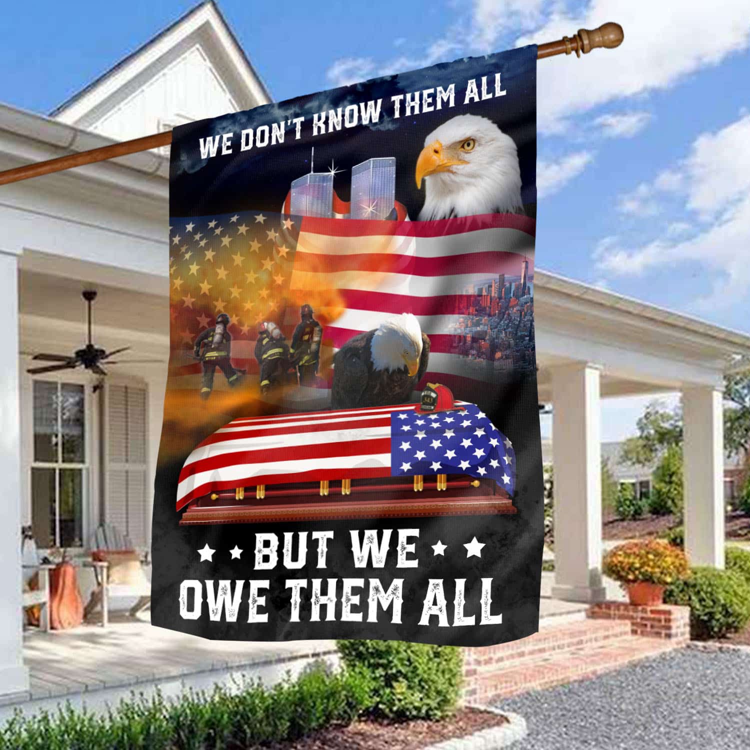 Let’s Shop 9/11/2001 Firefighter 343 We Don’t Know Them All But We Owe Them All Eagle American Garden Flag – House Flag!