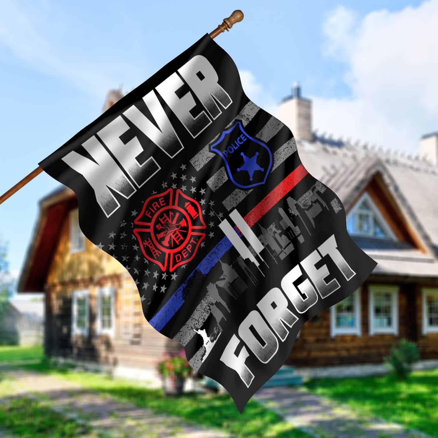 Let’s Shop 911 Never Forget Policeman Law Enforcement Firefighter Garden Flag – 9/11 Patriot Day House Flag!
