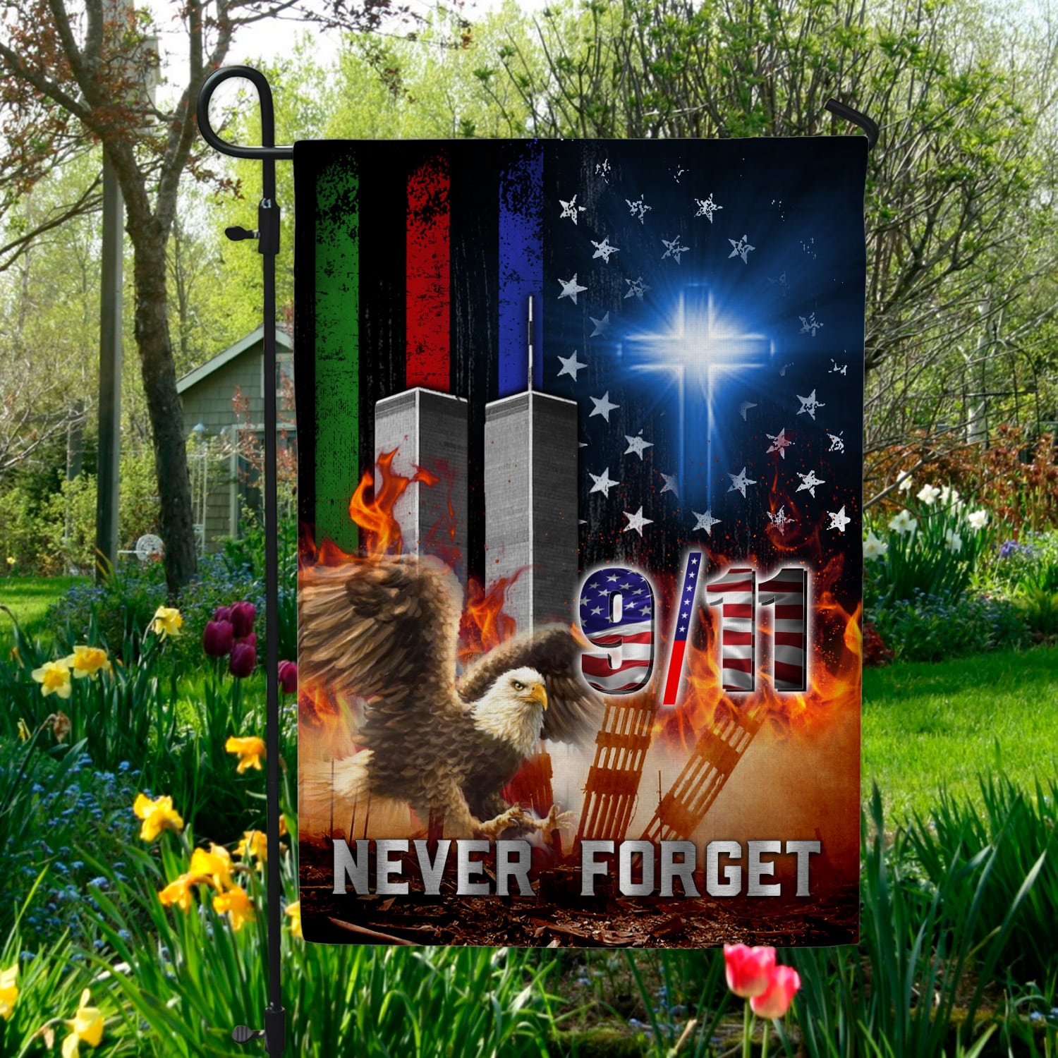 Let’s Shop Christian 9/11 We Will Never Forget Twin Towers America Decorative Garden Flag – Indoor Outdoor Flag – House Flag!