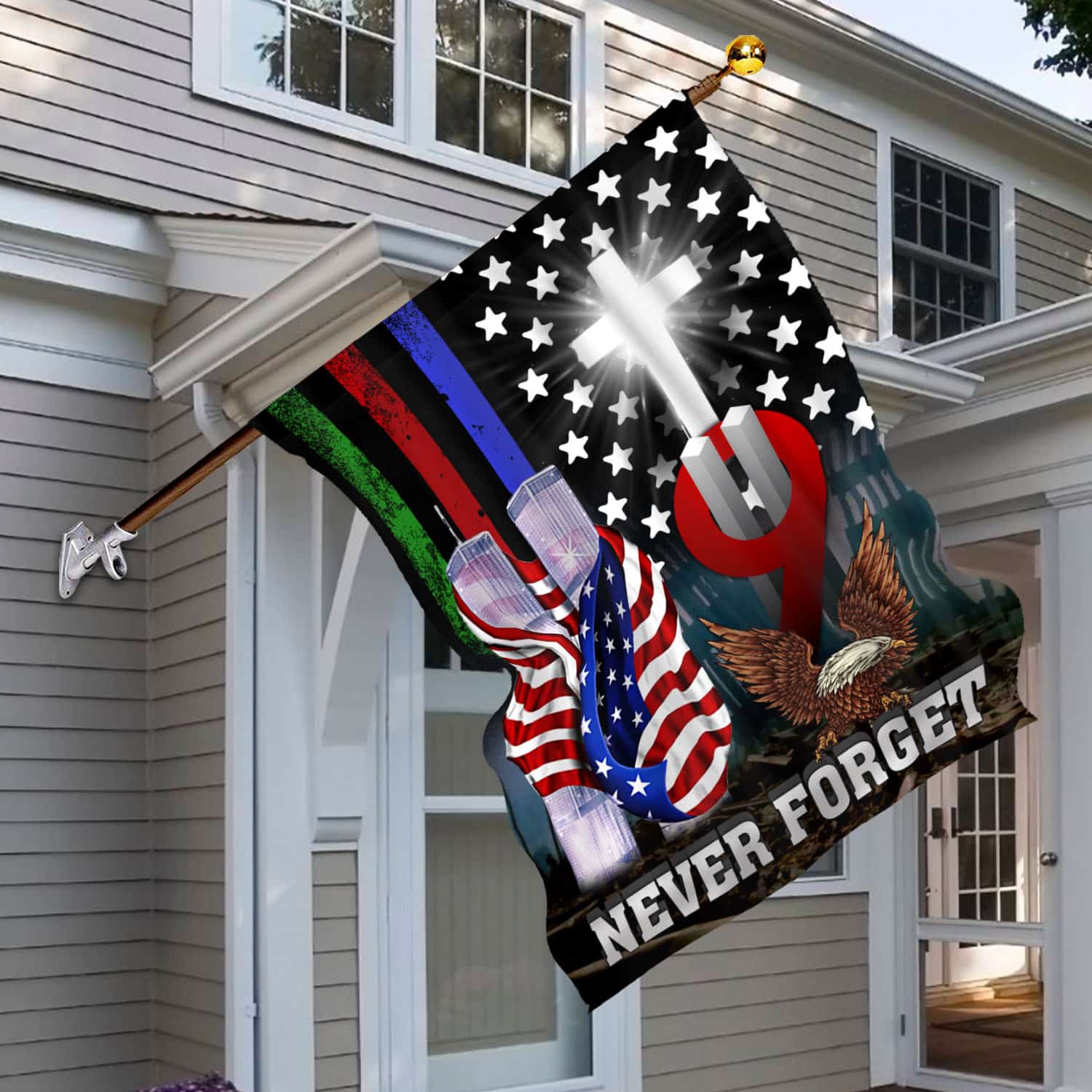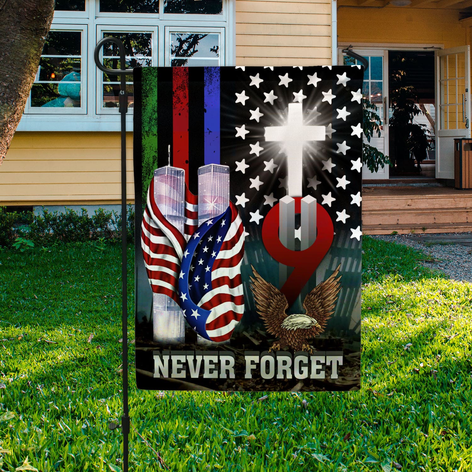 Let’s Shop 9/11 Never Forget Jesus Cross American Outdoor House Flag – 9/11/2001 Memorial Home Garden Flag!