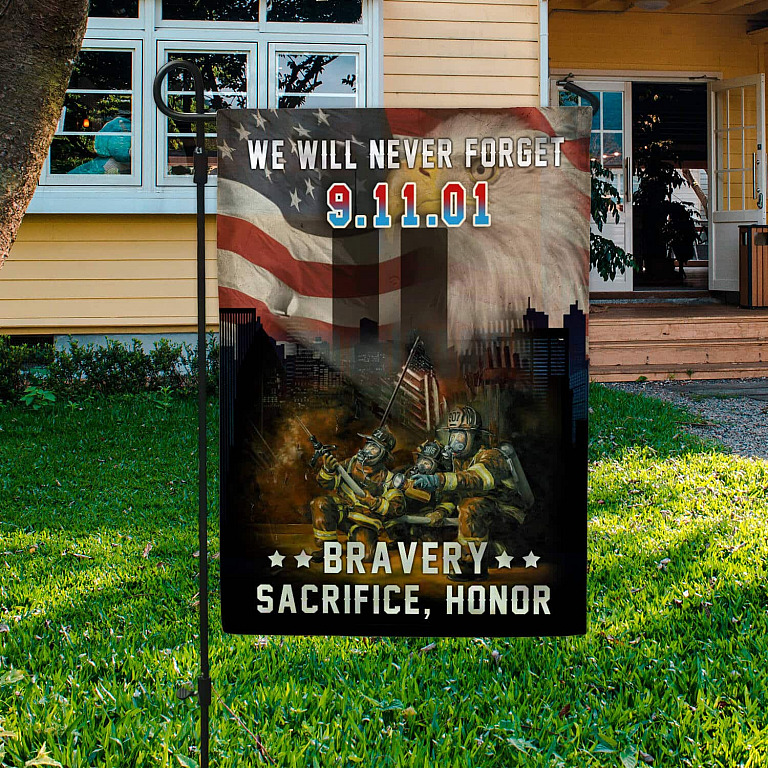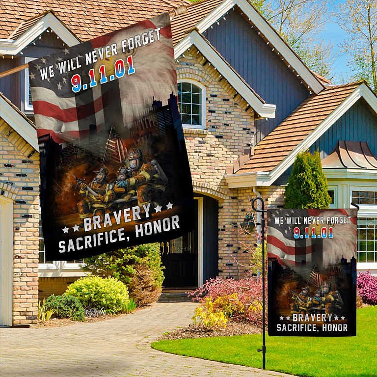 Let’s Shop We Will Never Forget 9/11/01 Bravery Sacrifice Honor Firefighters-9/11 Firefighters Garden Flag – House Flag!