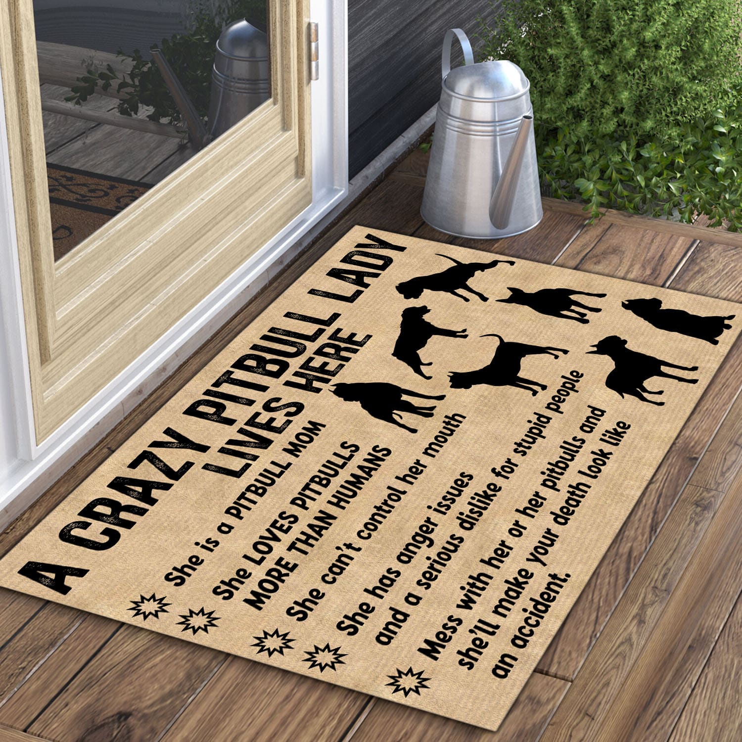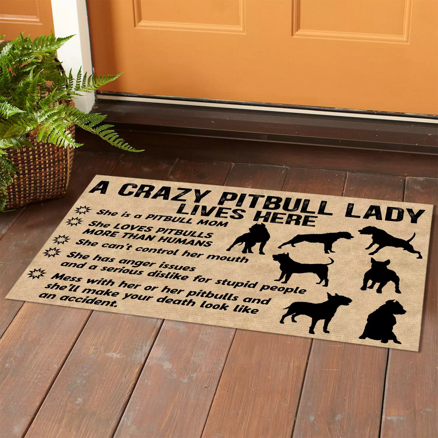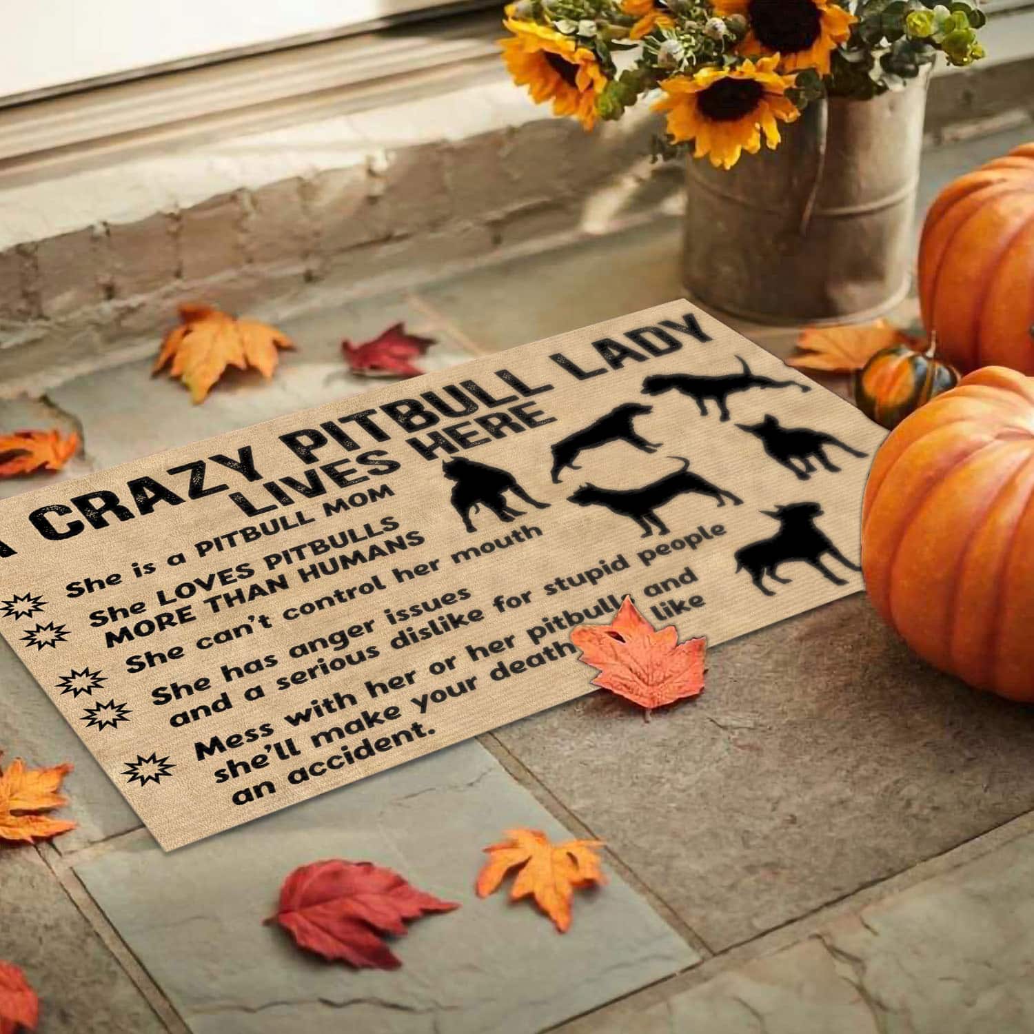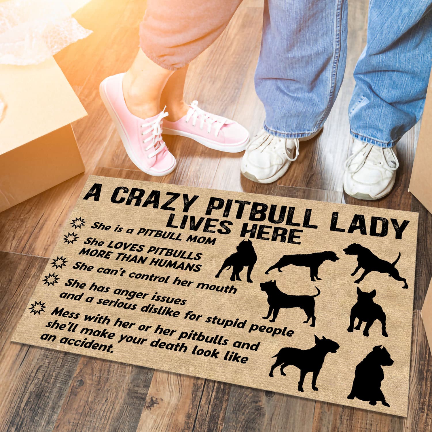 Let’s Shop A Crazy Pitbull Lady Lives Here She Is a Pitbull Mom Crazy Pitbull Lady Gifts Entrance Indoor Outdoor Doormat!
