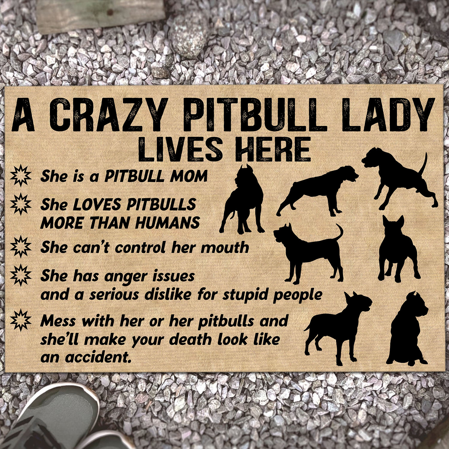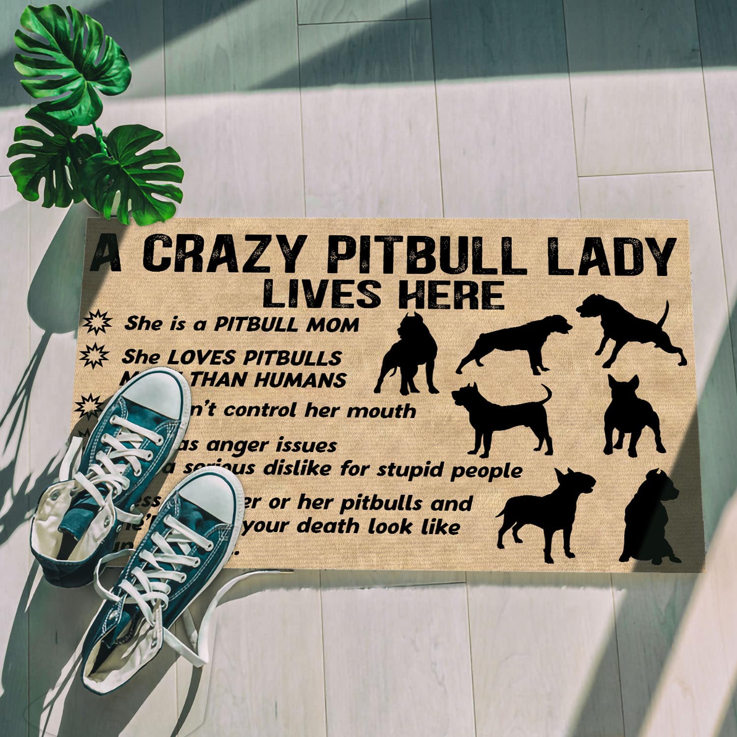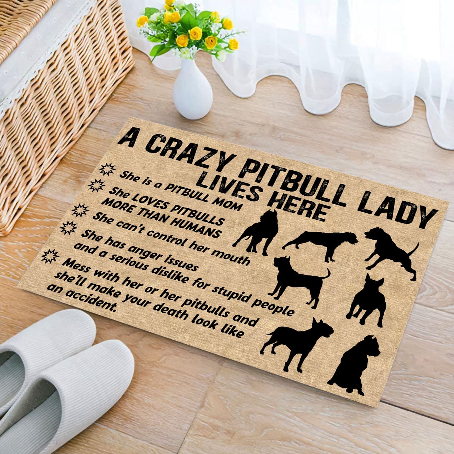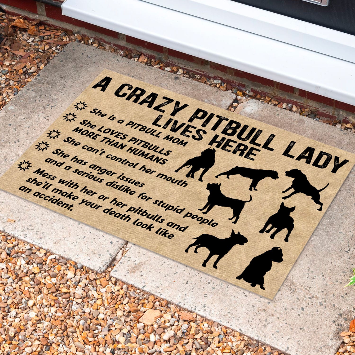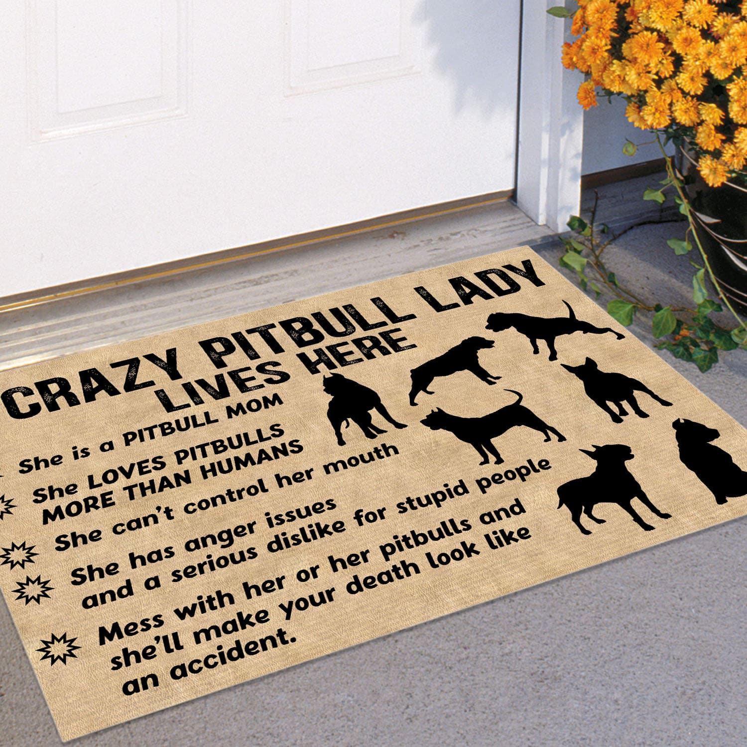 Let’s Shop A Crazy Pitbull Lady Lives Here She Is a Pitbull Mom Crazy Pitbull Lady Gifts Entrance Indoor Outdoor Doormat!