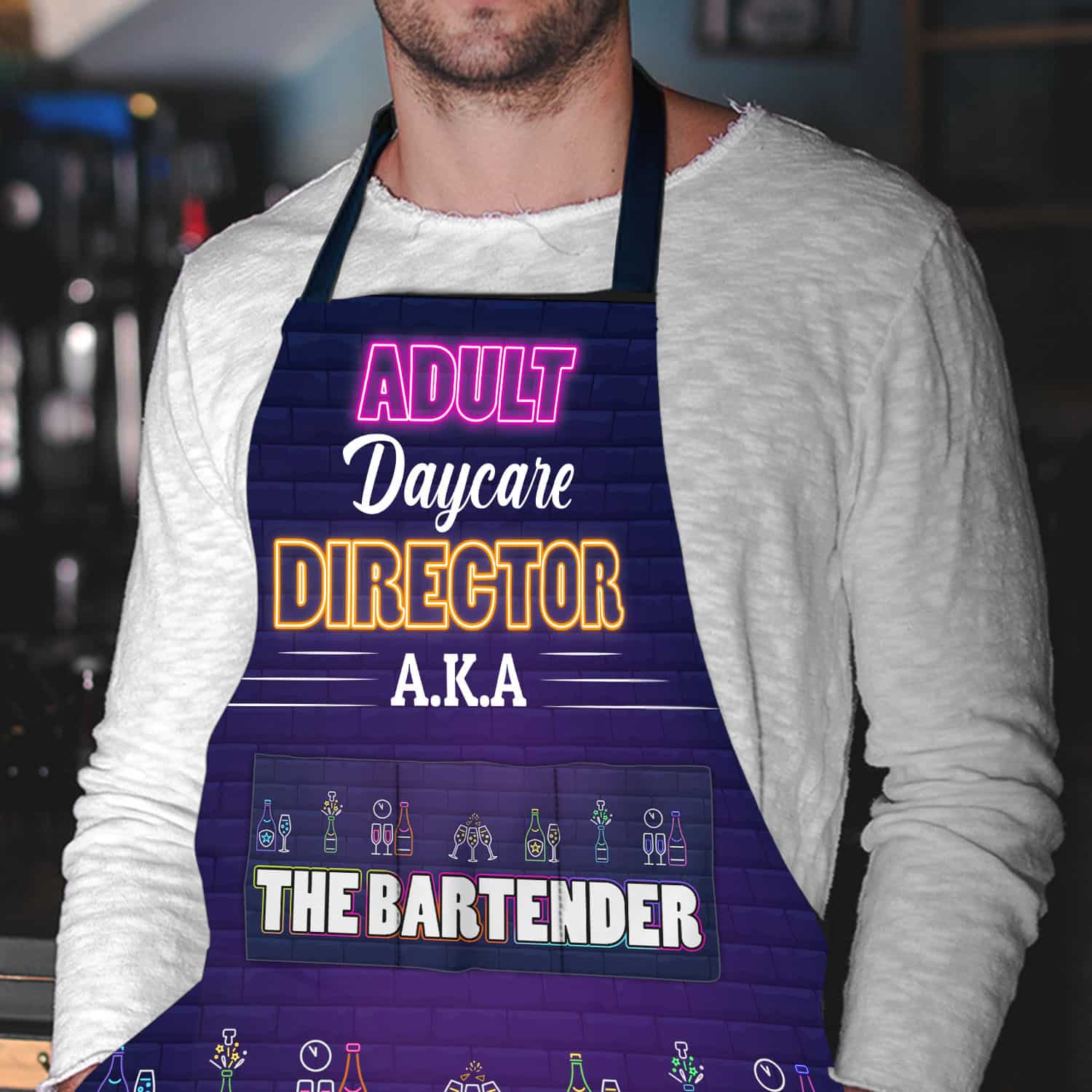 Let’s Shop Funny Bartending Apron, Bartender Apron, Bartender Gift, Barista Apron, Barmen, Adult Daycare Director A.K.A The Bartender!