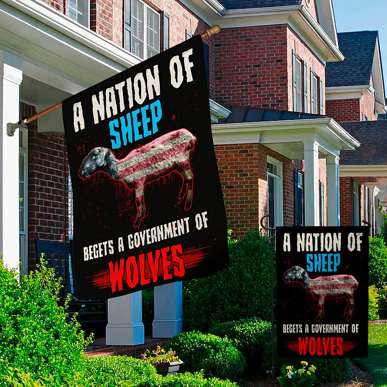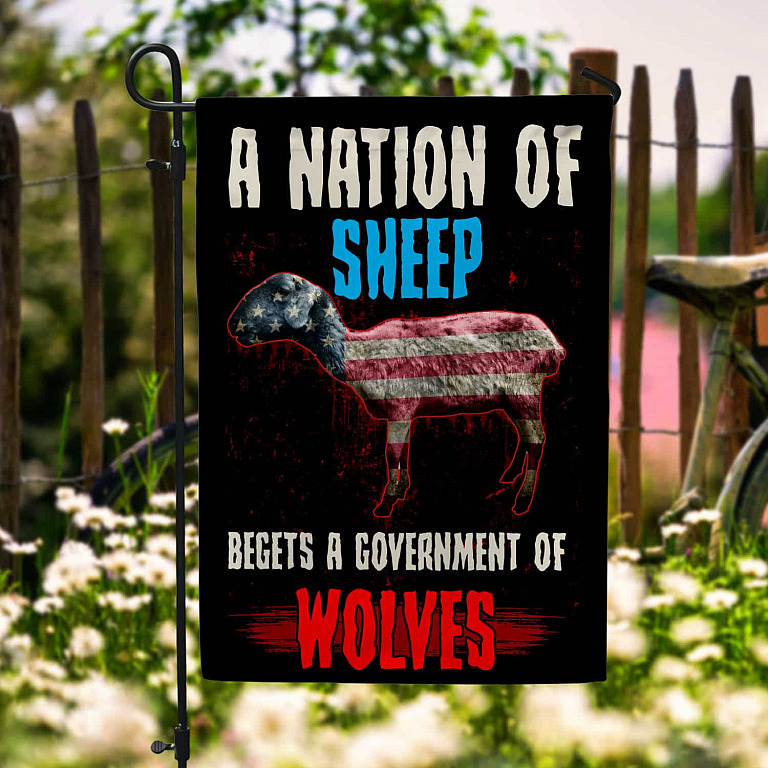 Let’s Shop A Nation Of Sheep Begets A Government Of Wolves Garden Flag – Anti Joe Biden Anti Democrat House Flag!