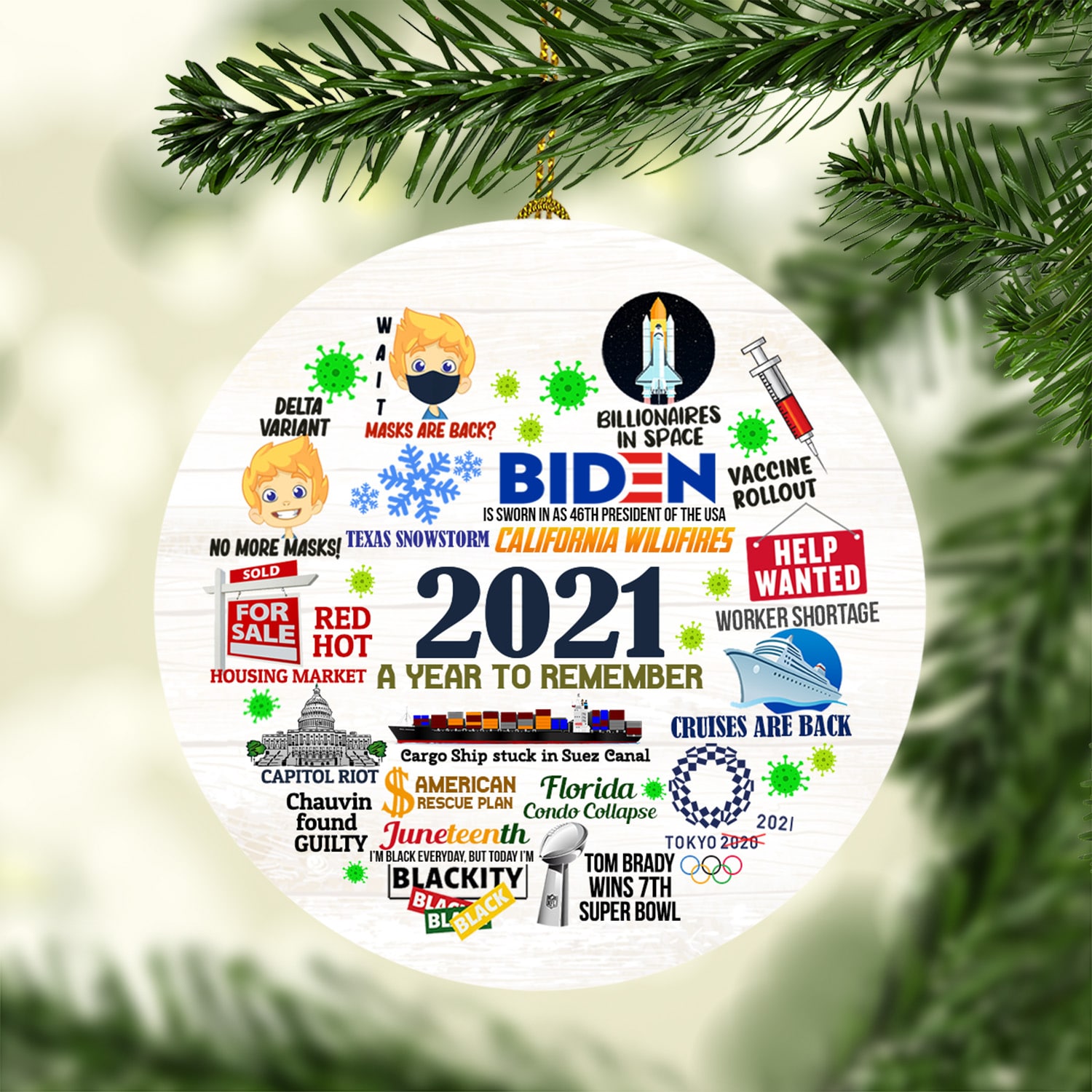 Let’s Shop 2021 A Year To Remember Decorative Christmas Ornament – Flat Circle Ornament!