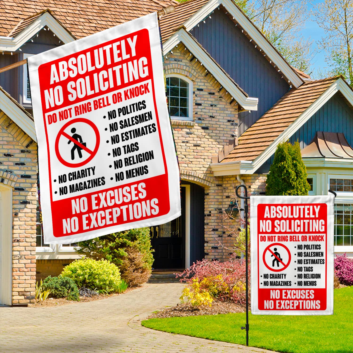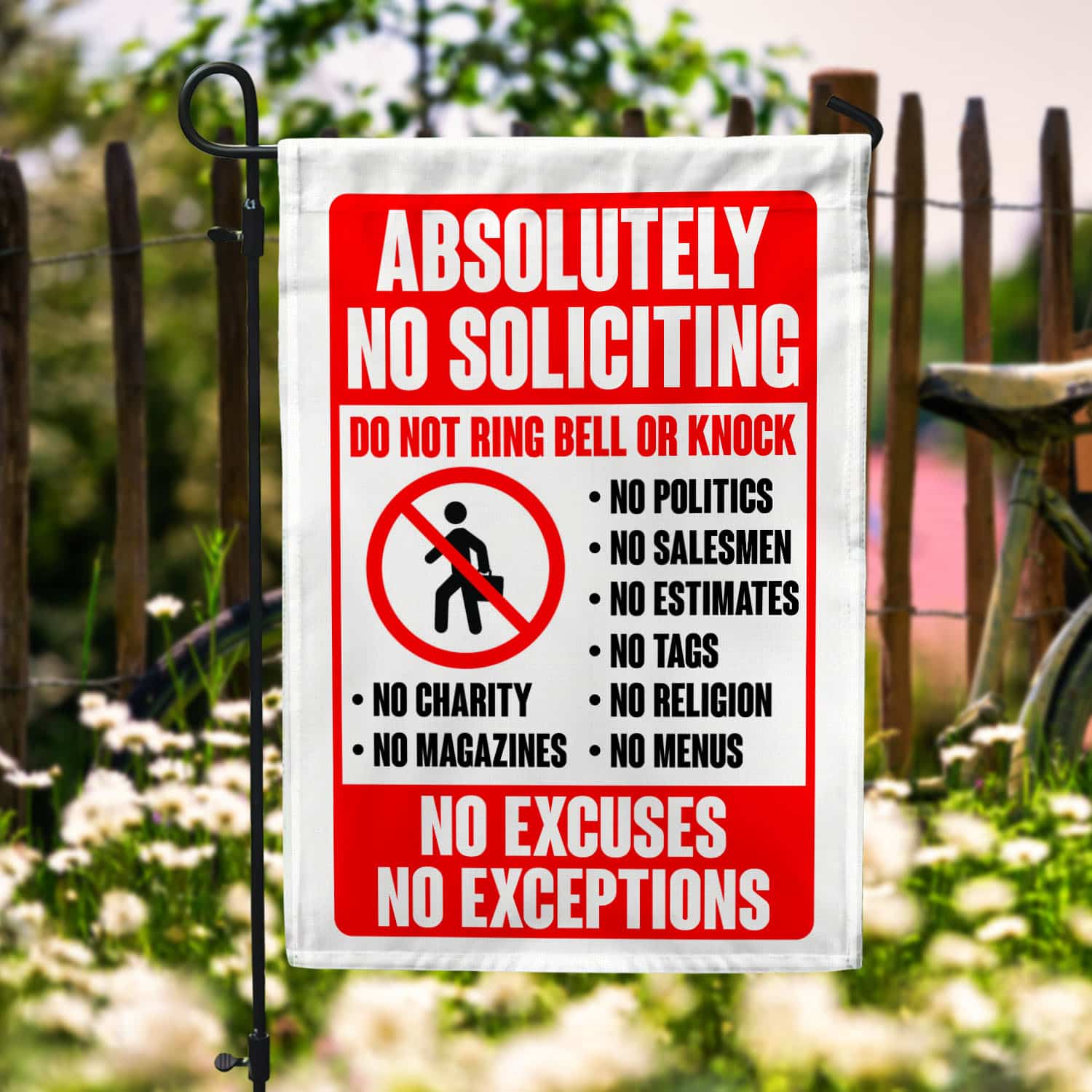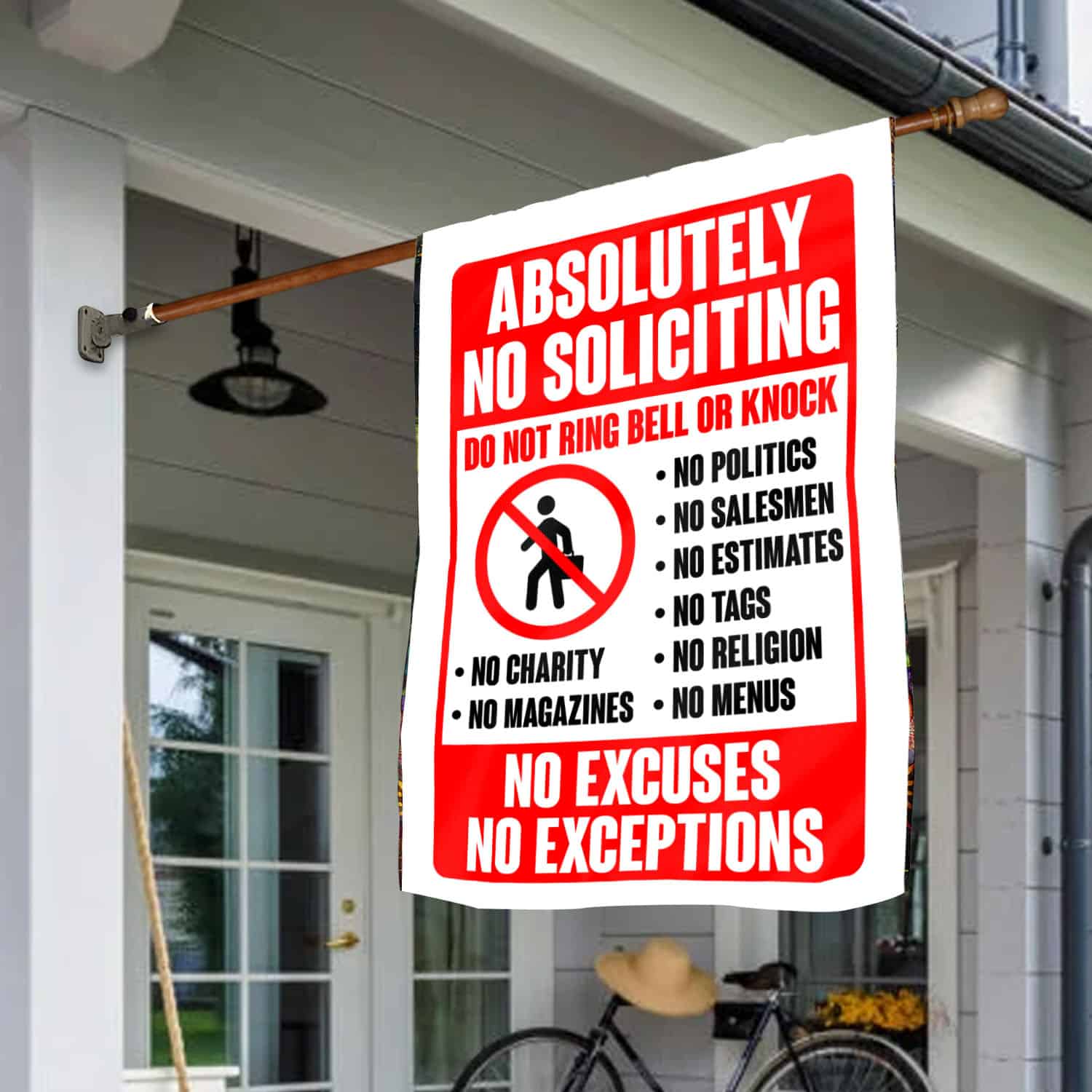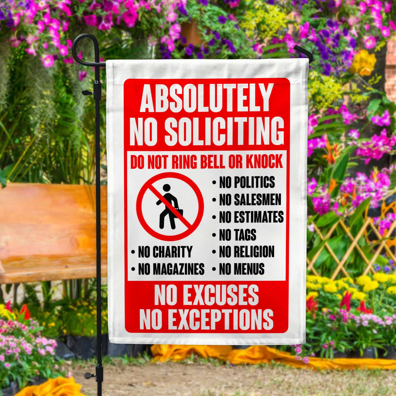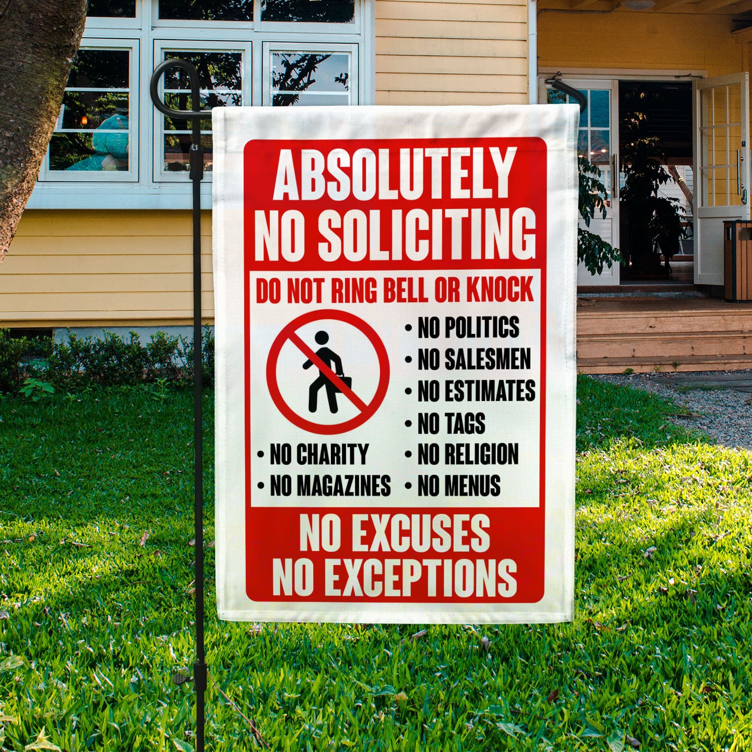 Let’s Shop Absolutely No Soliciting Do Not Ring Bell Or Knock No Excuses No Exception Funny Garden Flag – House Flag!