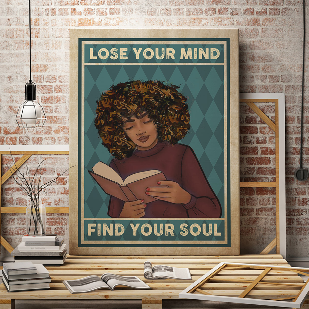 Let’s Shop Lose Your Mind Find Your Soul Framed Canvas – Afro Woman Reading Books Unframed Poster!