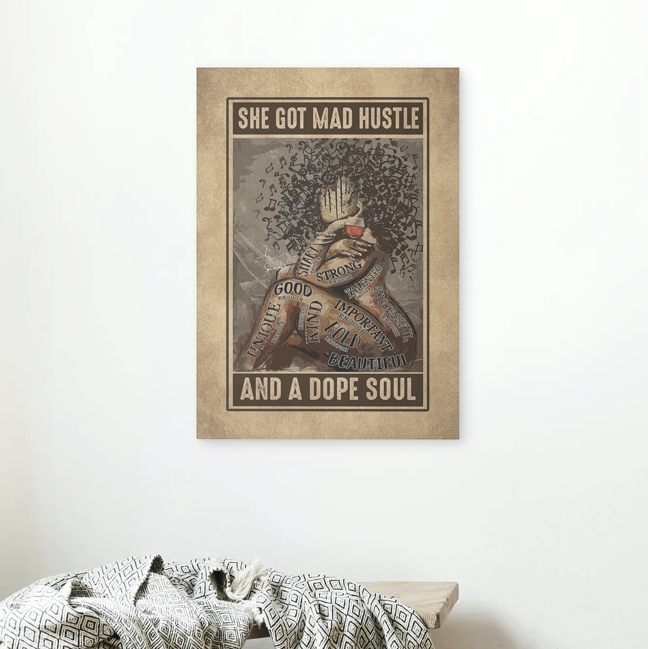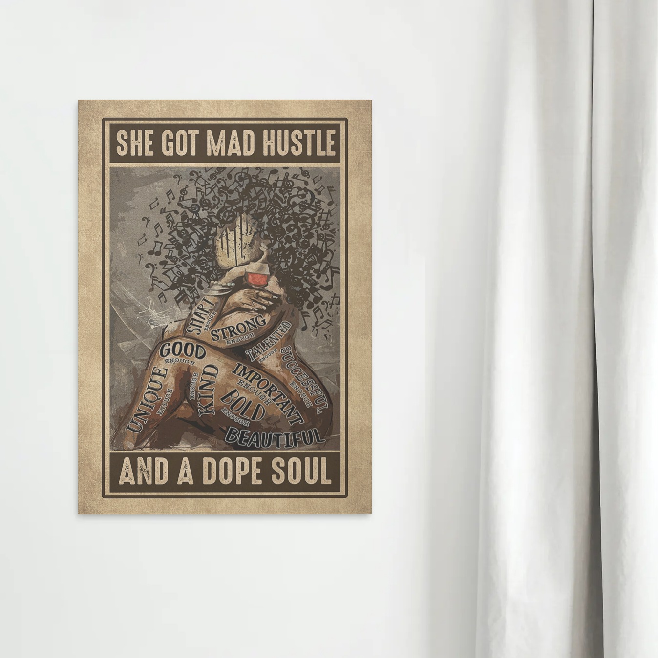 Let’s Shop She Got Mad Hustle And A Dope Soul Afro Girl Music And Wine I Am Enough Framed Canvas Prints – Unframed Poster!