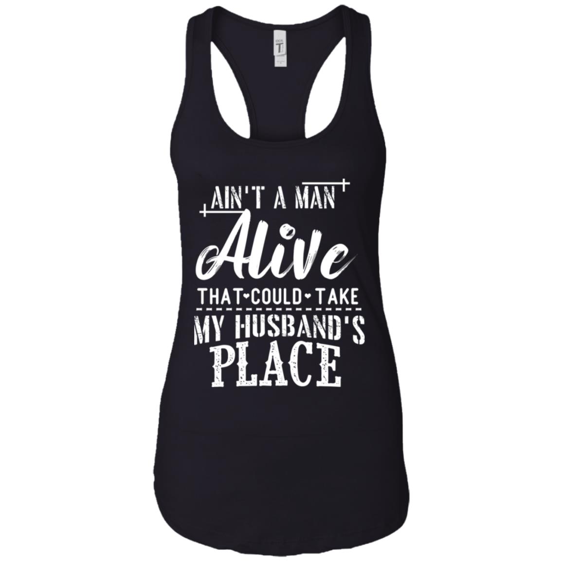 Ain’t A Man-Alive That Could Take My Husband’s Place Cotton Tank Top Tee – Ladies Racerback Tank