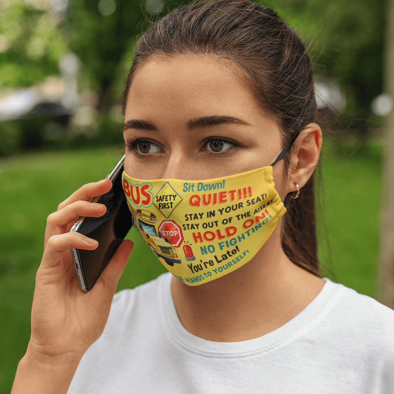 Let’s Shop School Bus Driver Face Mask All About That Bus Washable Reusable Custom – Printed Cloth Face Mask!