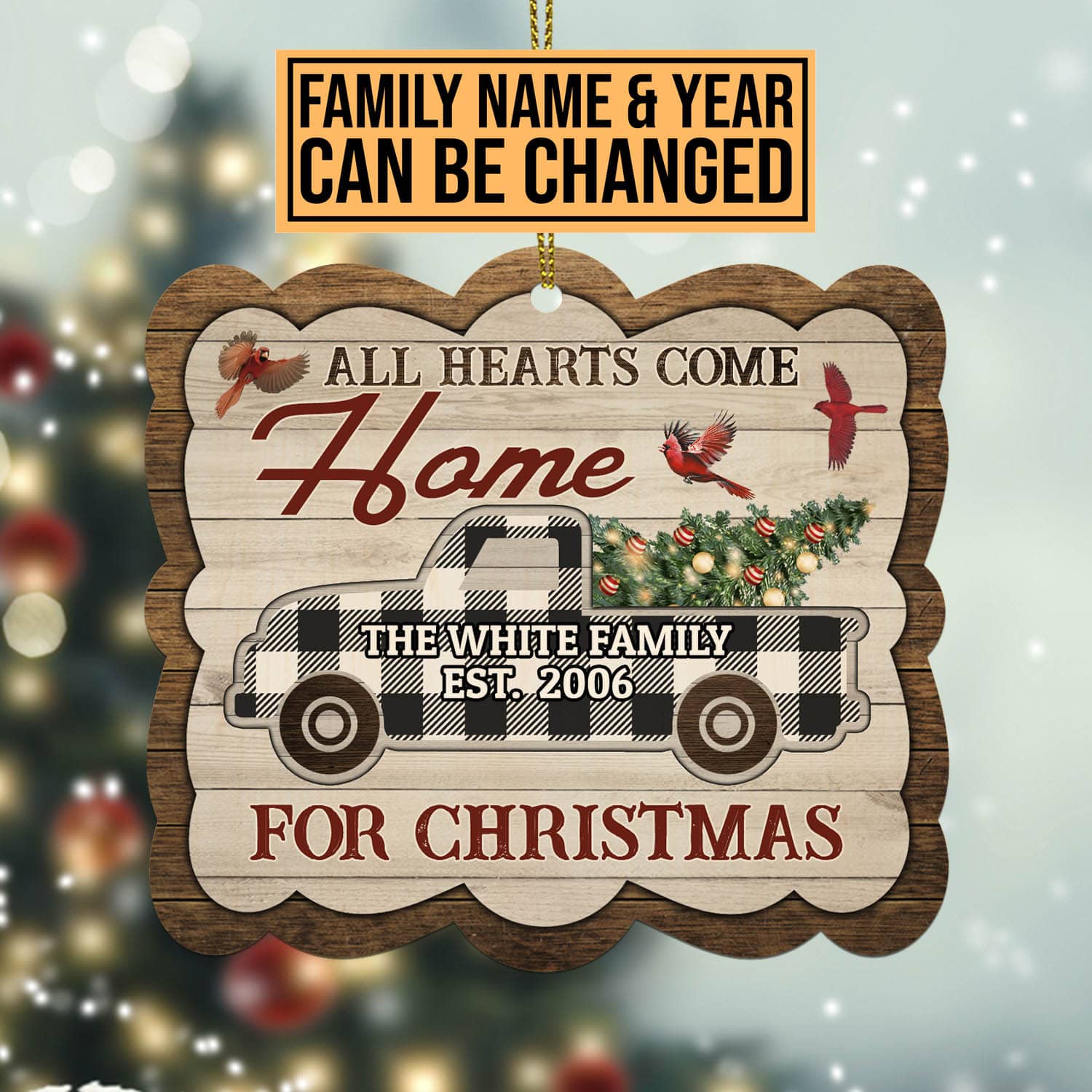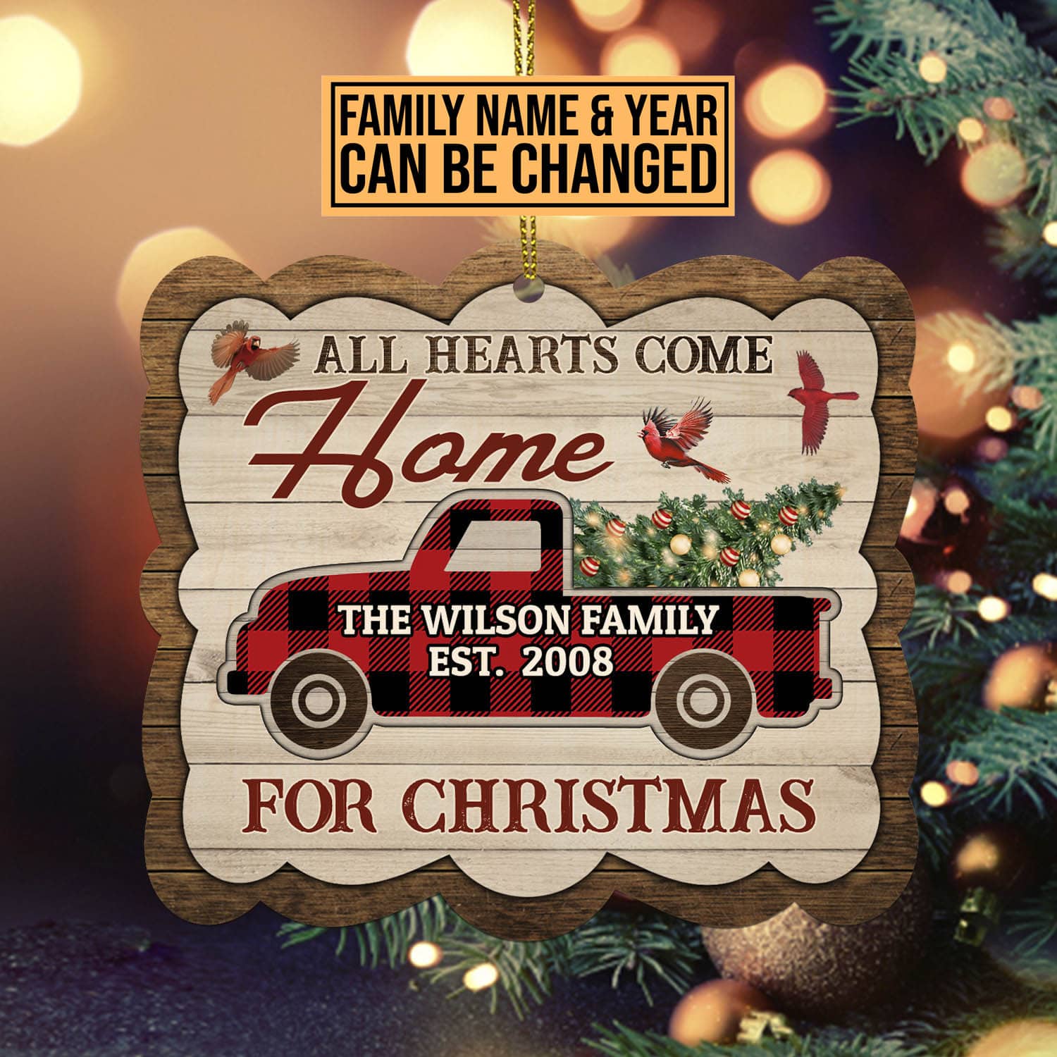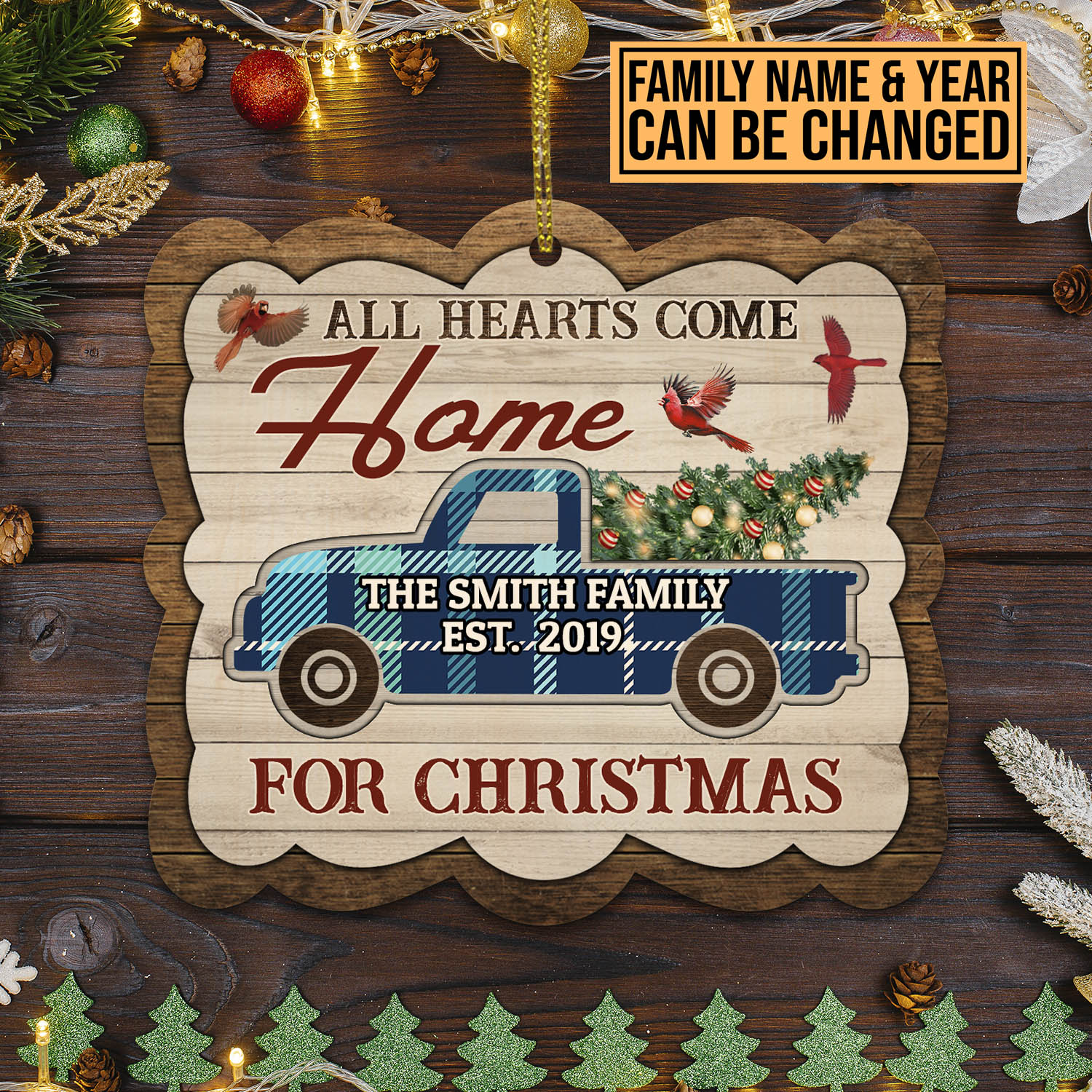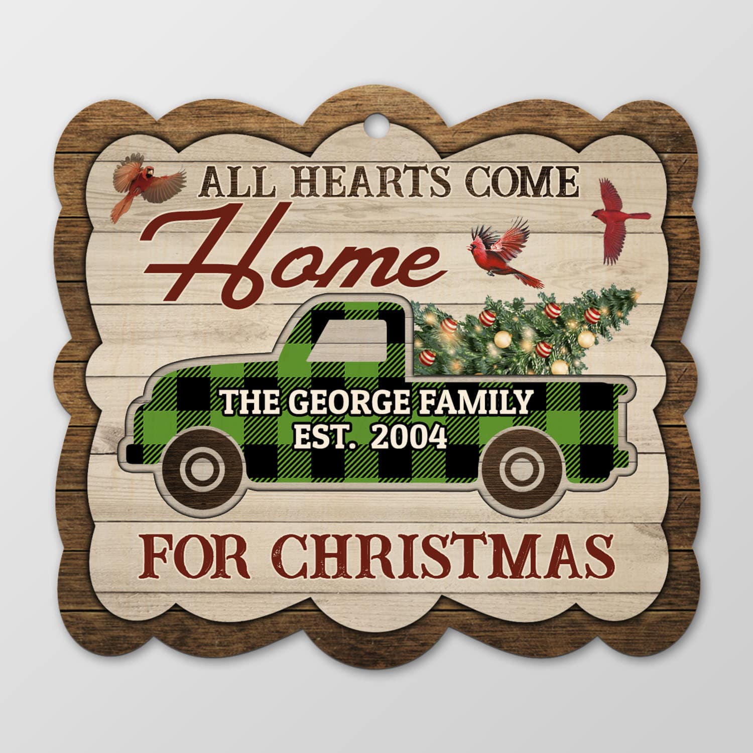 Let’s Shop All Hearts Come Home For Christmas Custom Shaped Wooden Christmas Ornament – Personalized Family Name Ornament!