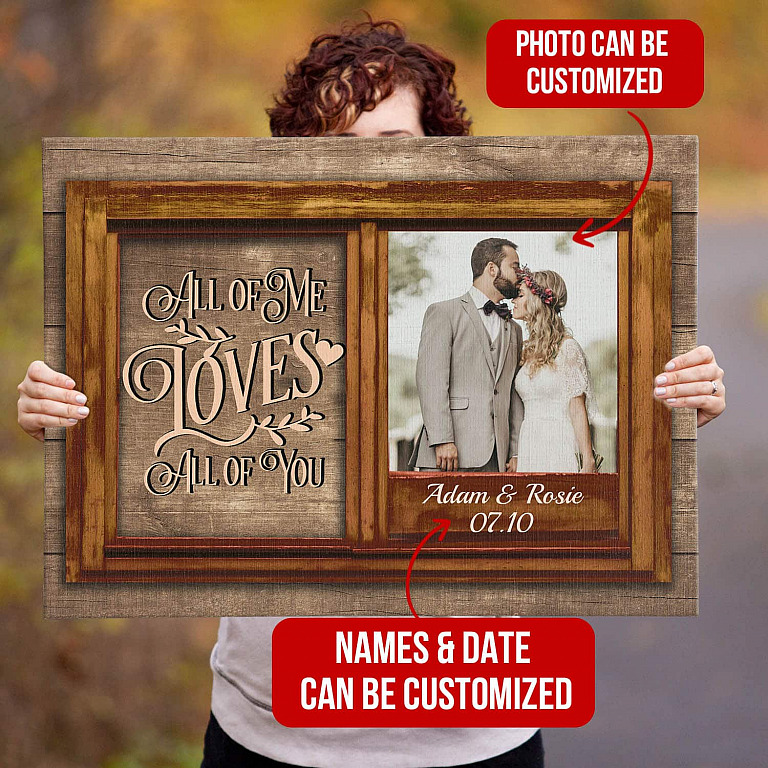 Let’s Shop All of Me Loves All of You Personalized Photo Canvas – Couple Framed Canvas – Unframed Poster – Gift for Lovers!