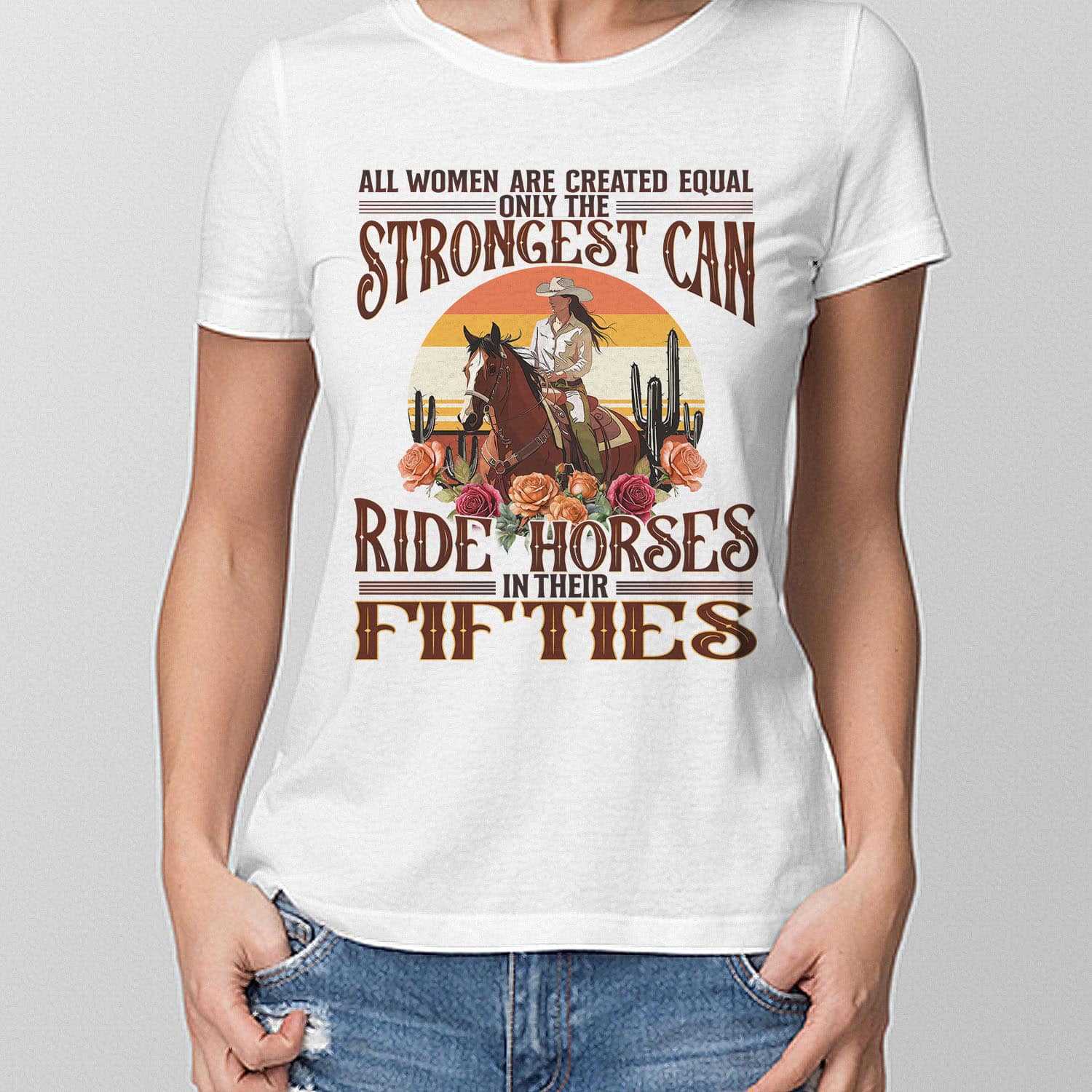 Are you spending too much time to find creative merchandise for you or suitable & special gifts for your mommy, your daddy, your son, your daughter, your children, your friends or someone you love? The struggle is over because we have various type of products such as All Women Are Created Equal Shirt, All Women Are Created Equal Hoodie, Women Can Ride Horses Shirt, Horses Shirt, Horses Lovers Shirt, Fifties Shirt, All Women Are Created Equal Only The Strongest Can Ride Horses In Their Fifties Shirt which will make perfect presents for your beloveds. In order to make your present stand out, we have created lots of unique and awesome customized photo gifts & personalized designs.