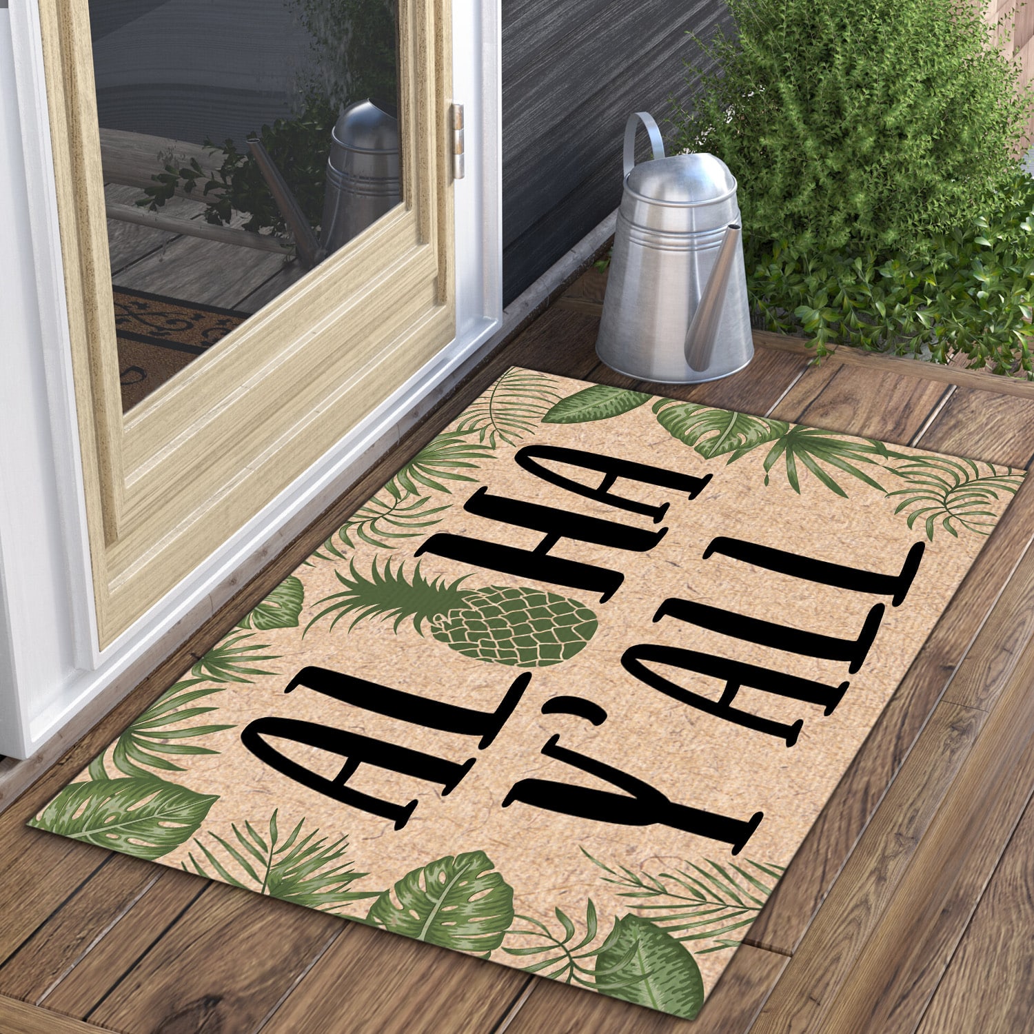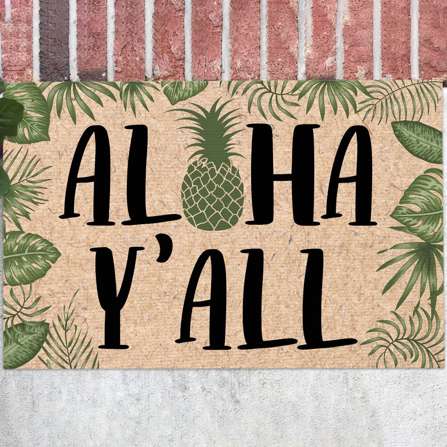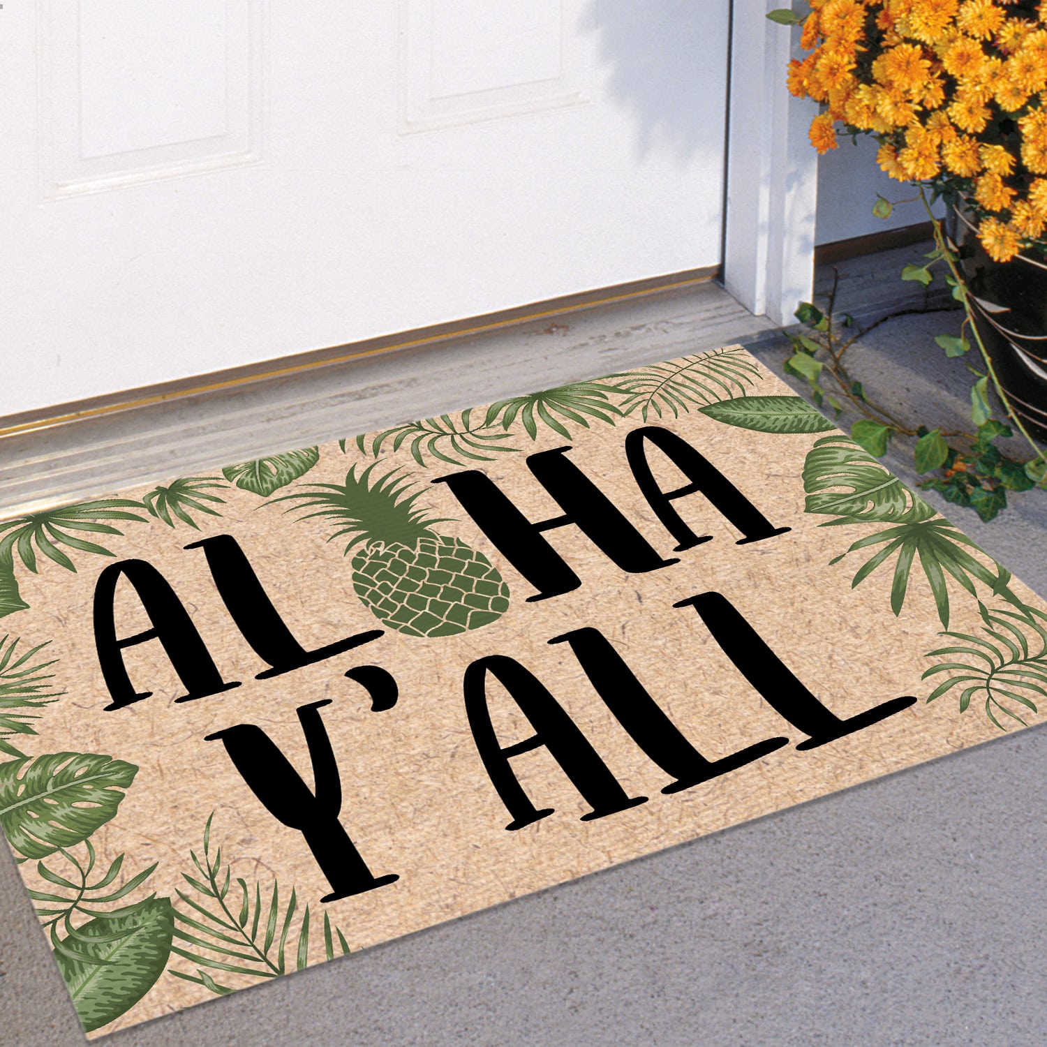 Let’s Shop Aloha Y’all Pineapple Tropical Doormat – Outdoor Indoor Doormat!