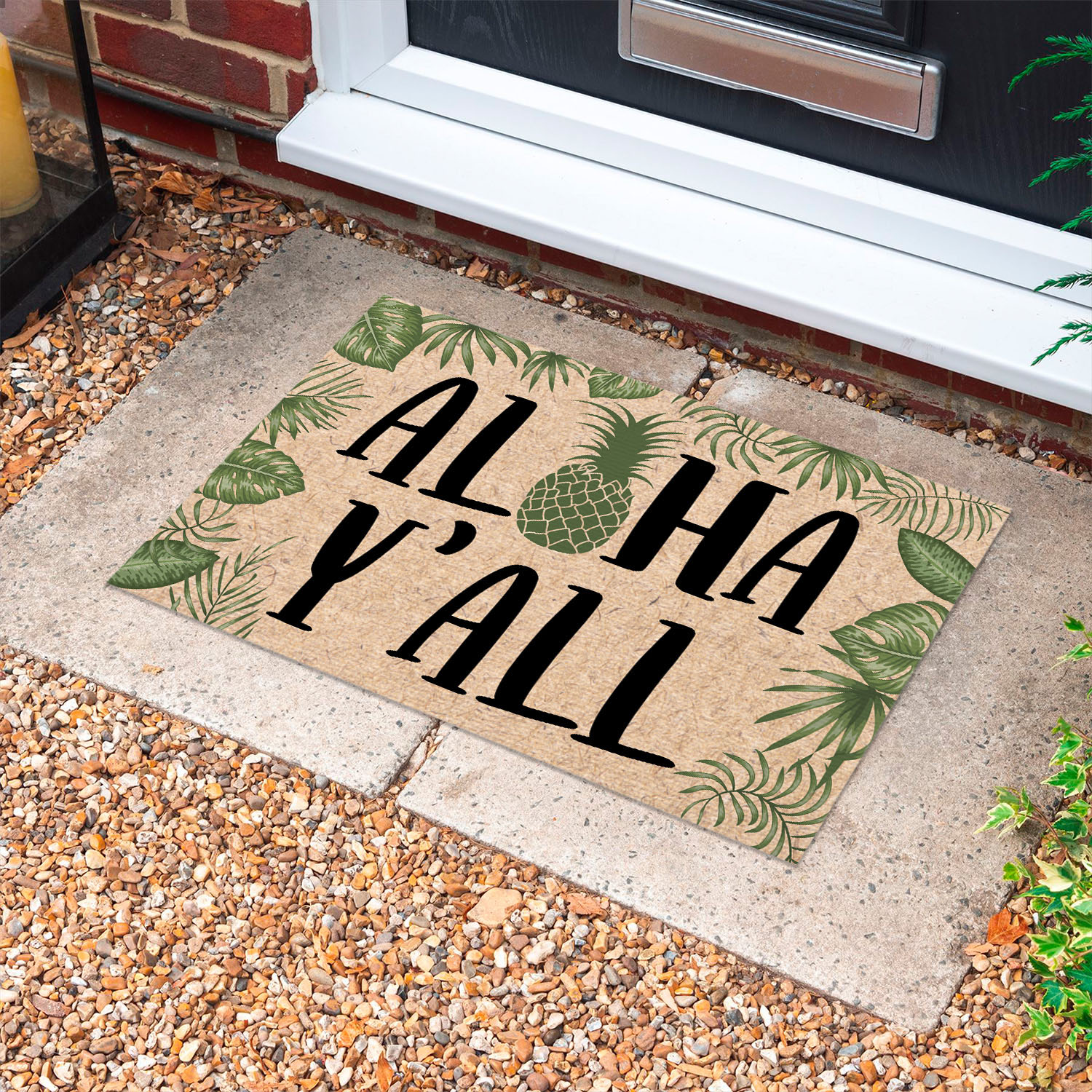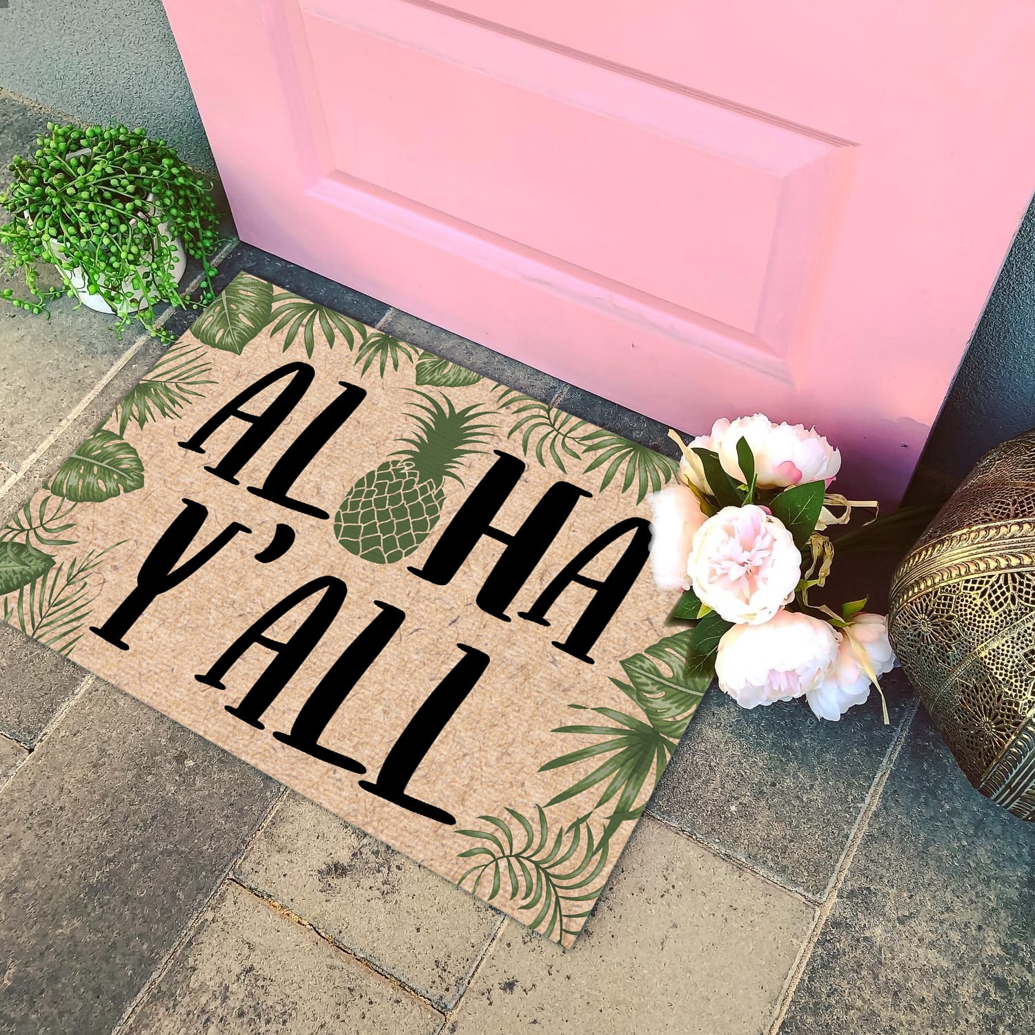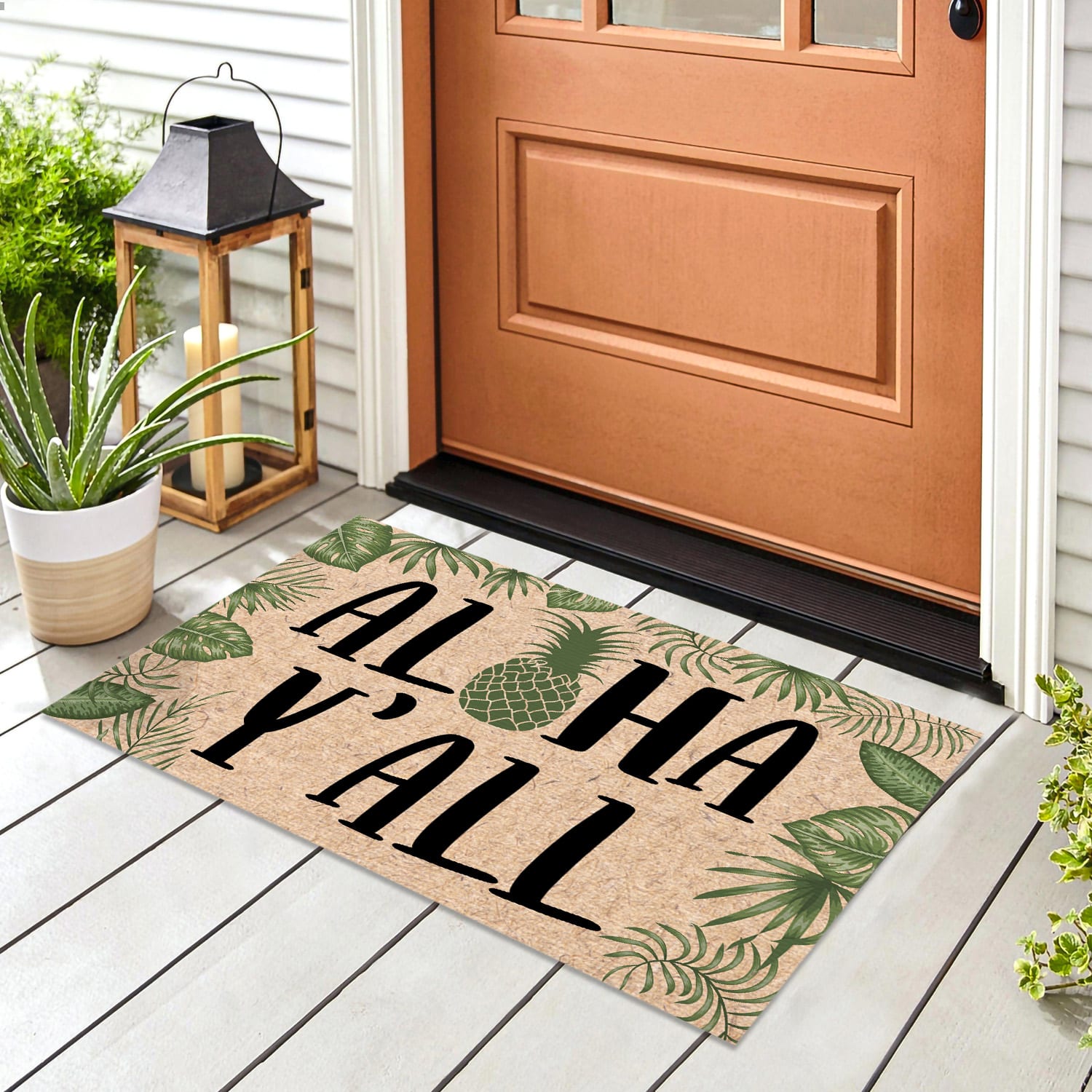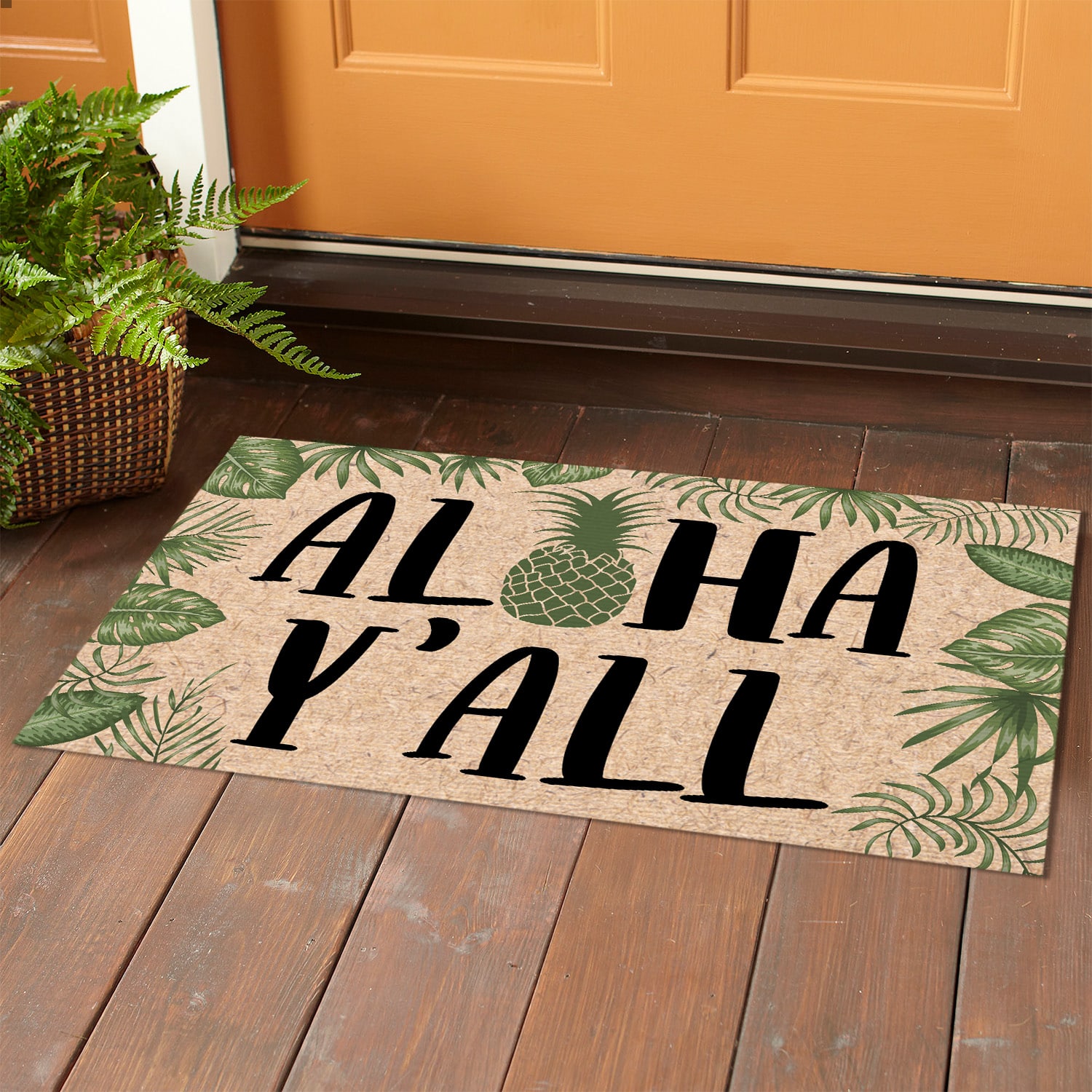 Let’s Shop Aloha Y’all Pineapple Tropical Doormat – Outdoor Indoor Doormat!