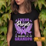 Personalized Name I Wear Purple Alzheimers Pancreatic Awareness T-Shirt – V-Neck Shirt
