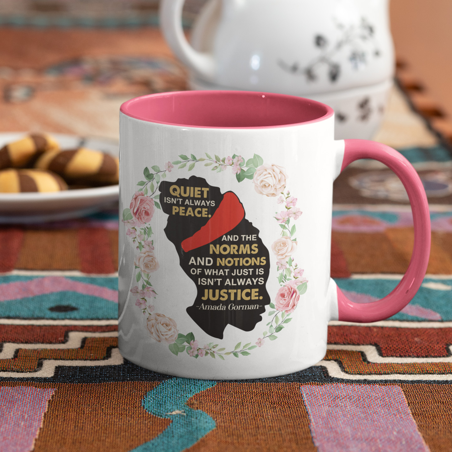 Let’s Shop Amanda Gorman Poetry The Hill We Climb Quiet Isn’t Always Peace Inauguration Poem Accent Mug!